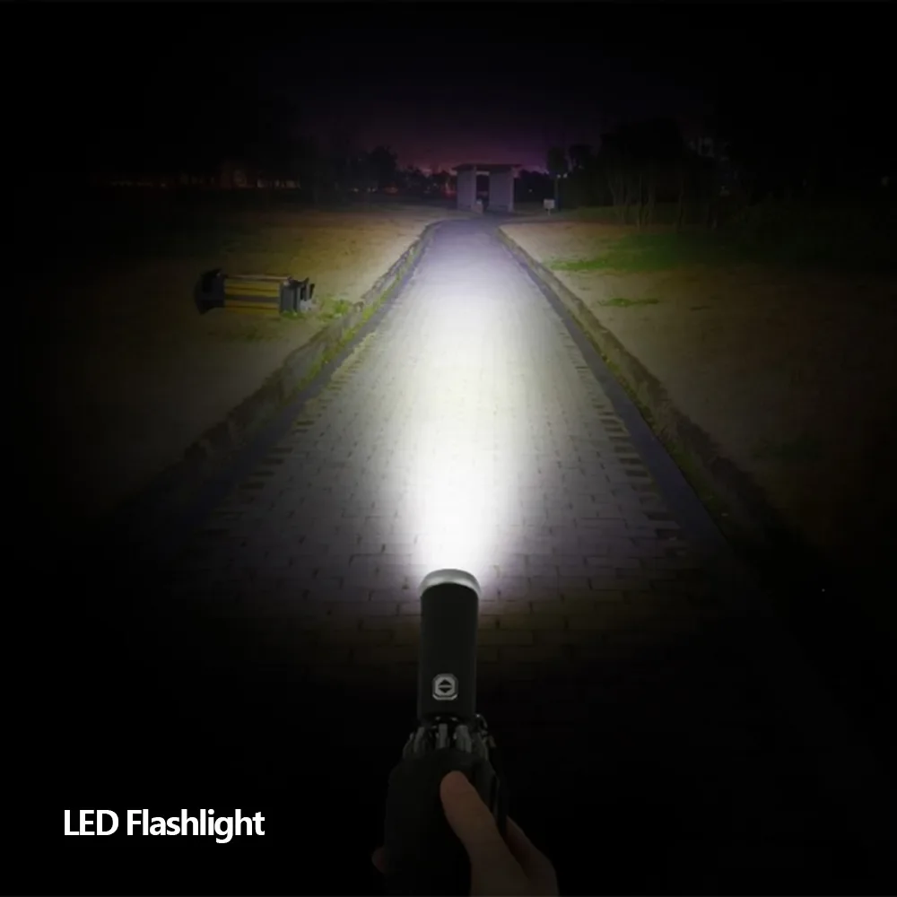 • Función todo en uno :Este paraguas tiene múltiples funciones, incluyendo una linterna LED, sombrilla UV y resistencia al viento, lo que lo convierte en un accesorio versátil y práctico para cualquier actividad al aire libre.