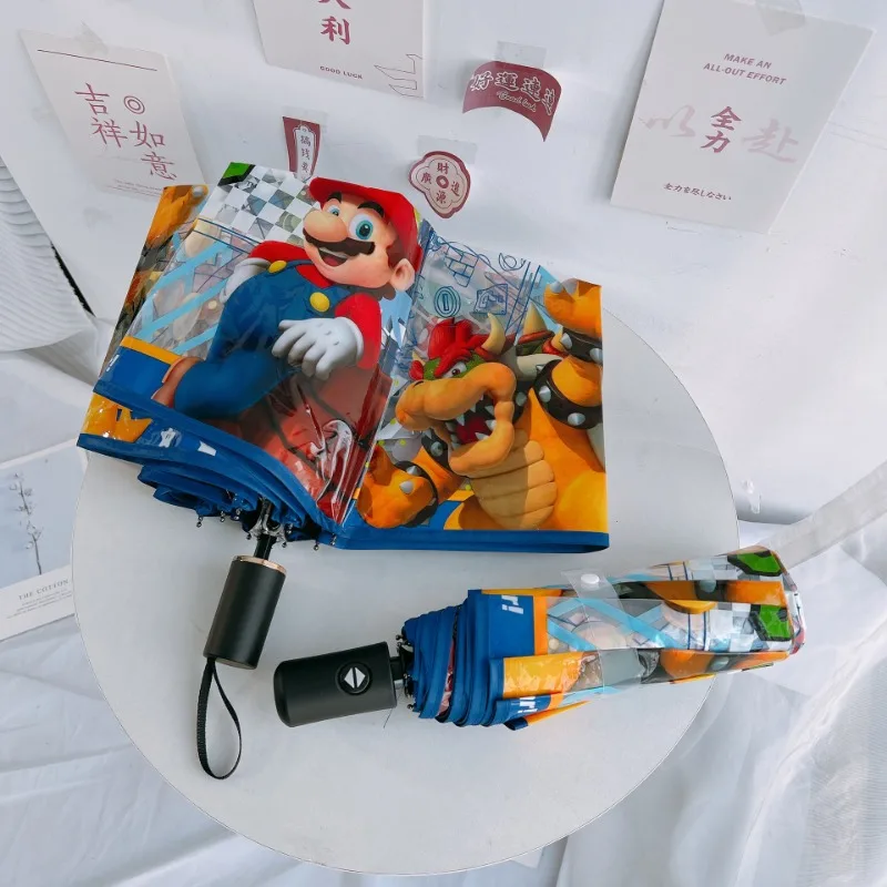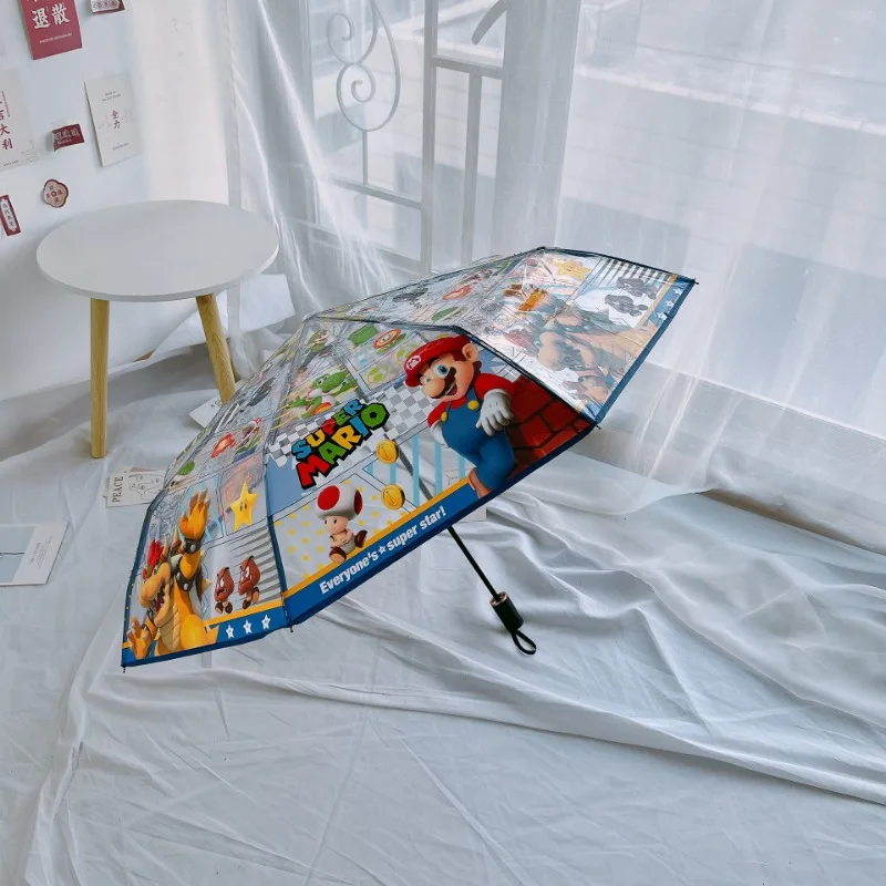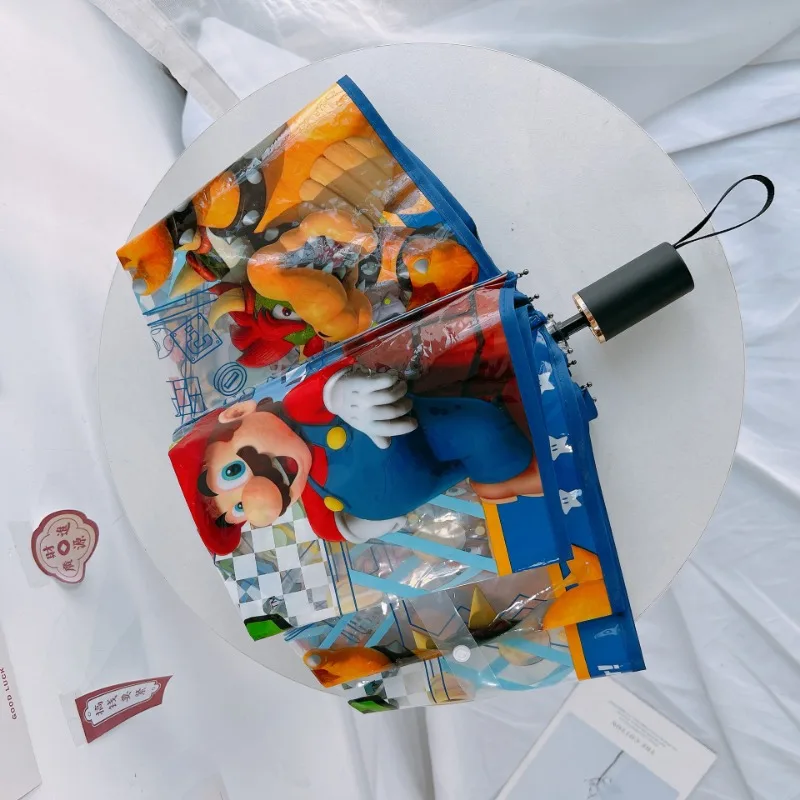 Paraguas plegable automático transparente de dibujos animados de Marios, paraguas portátil de viaje para niños y estudiantes, regalos a prueba de viento y lluvia