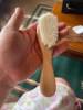 llego muy rapido, excelente estado, es lo que promete. El cepillo es suave y tiene cerdas abundates.