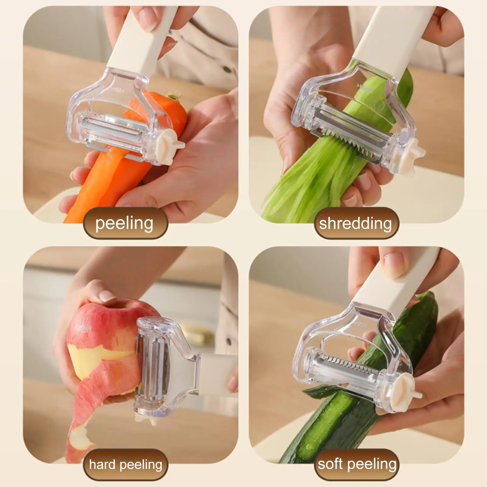 4. Verduras de cocina versátiles: simplifique la preparación de comidas pelando sin esfuerzo patatas, zanahorias, pepinos, calabacines, tomates, melocotones y peras, lo que la hace ideal para todas sus necesidades de cocina.