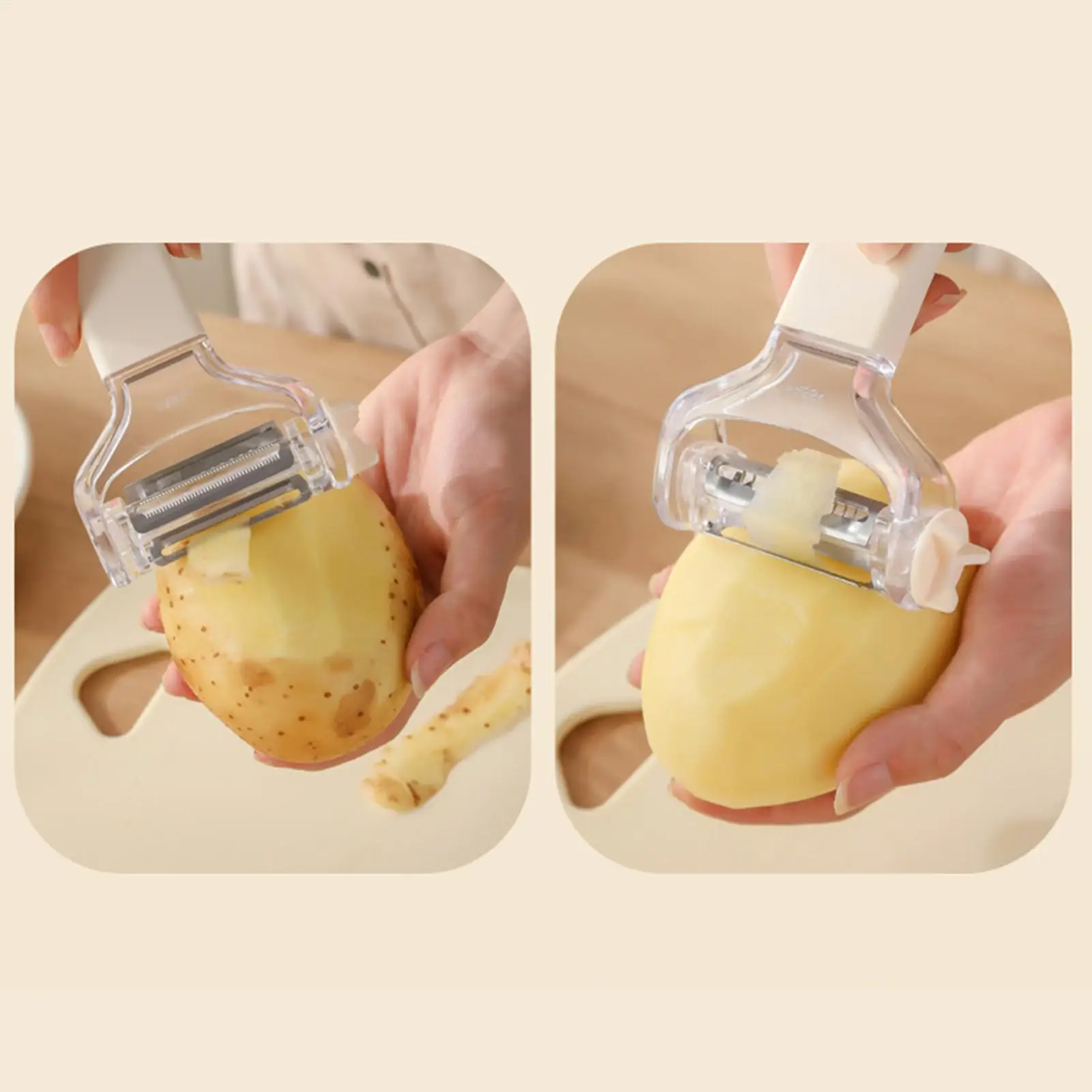 Mejore su rutina de cocina con este eficiente pelador de patatas, un práctico dispositivo diseñado para pelar verduras y frutas sin problemas.Ya sea que esté trabajando con patatas, pepinos o melocotones, esta herramienta manual simplifica la preparación de comidas y las tareas diarias de cocción.Como un complemento confiable para sus utensilios de cocina, brinda comodidad y precisión sin esfuerzos ni complicaciones innecesarios.