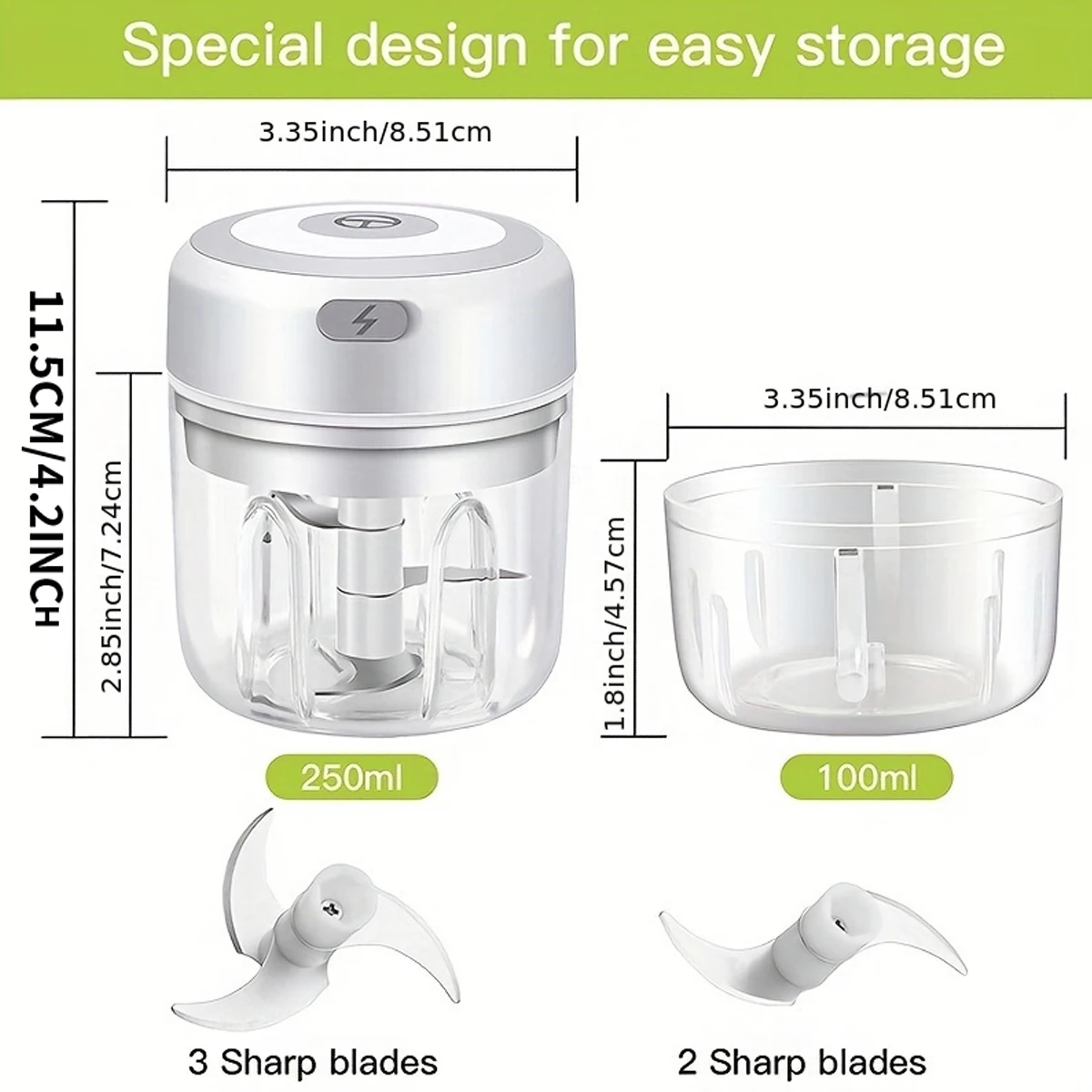 Mini picadora de ajo eléctrica, procesador de alimentos pequeño inalámbrico portátil sin BPA