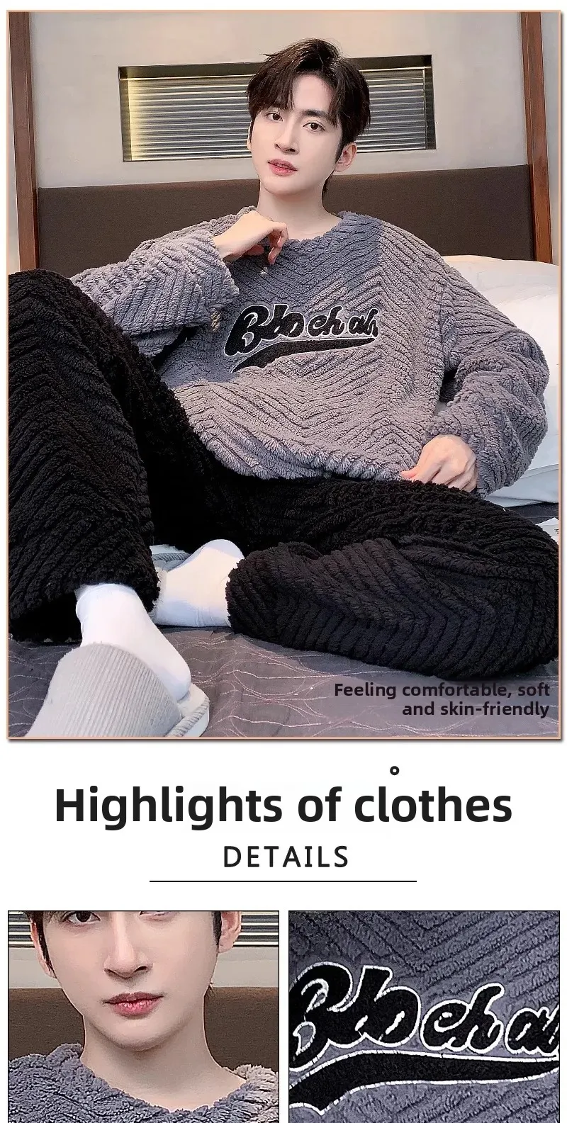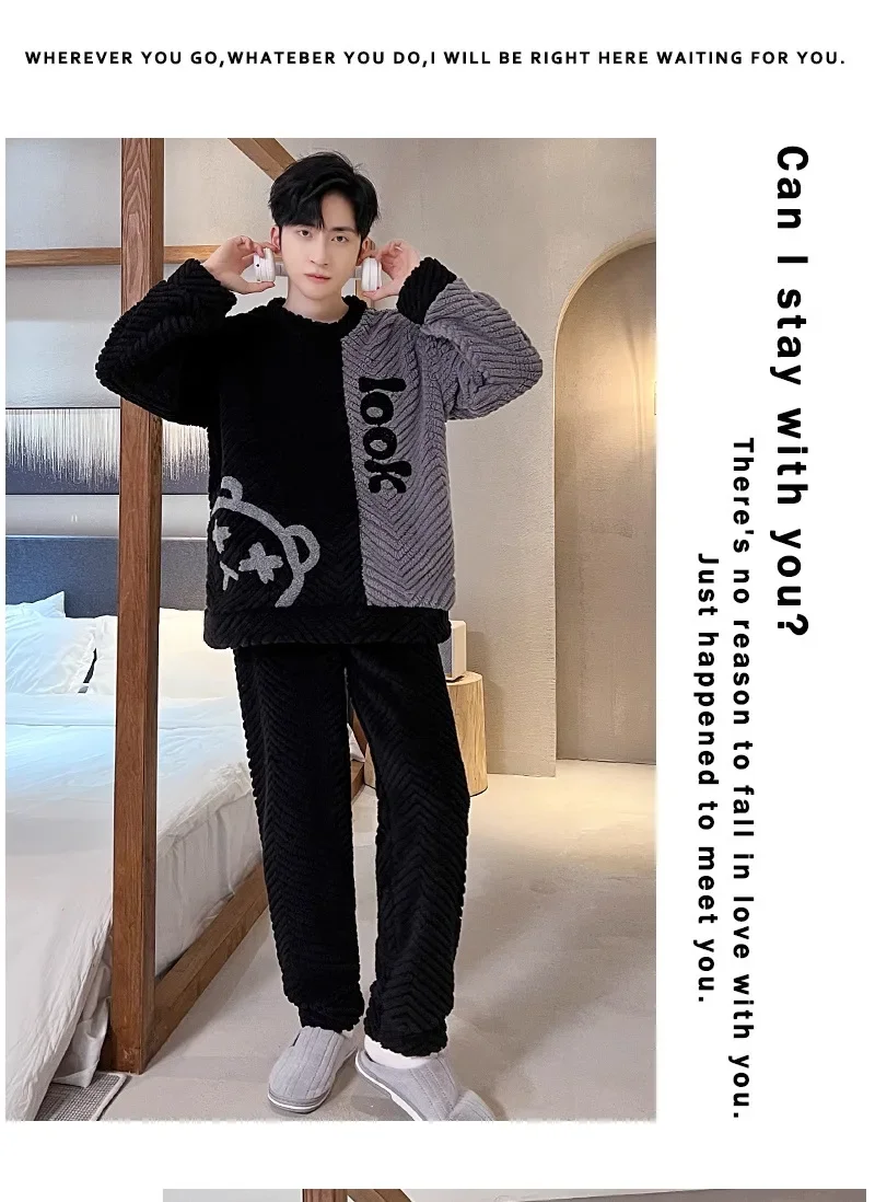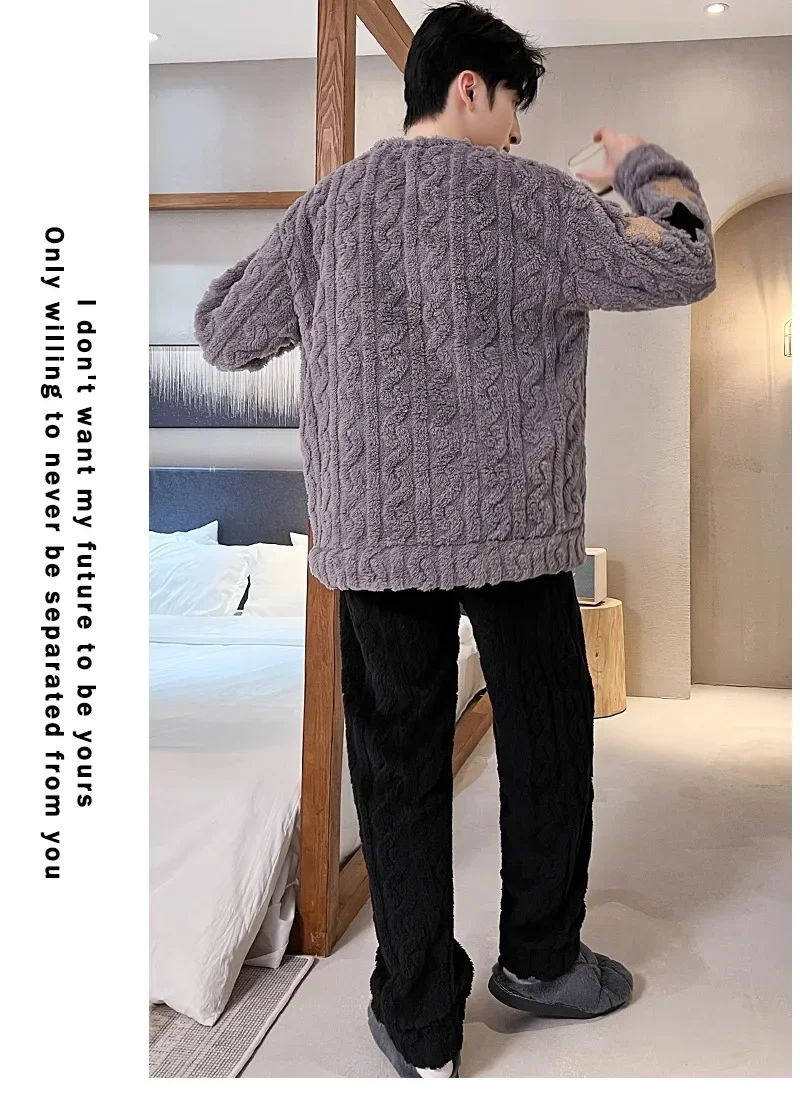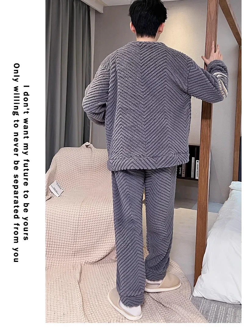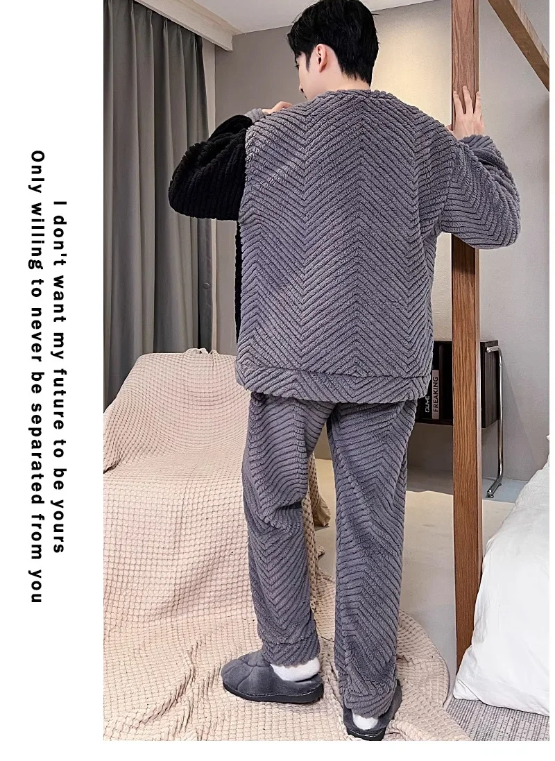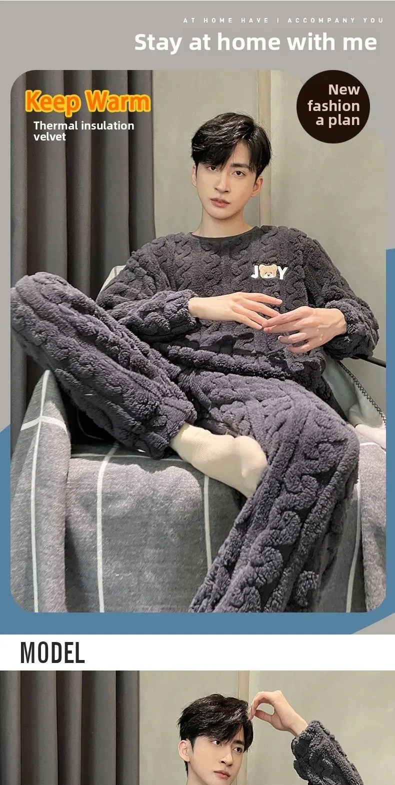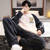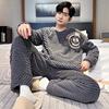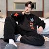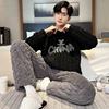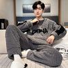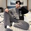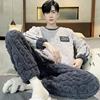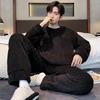 Pijamas gruesos de lana Coral para hombre, ropa cálida para el hogar, conjunto de dos piezas de franela, traje para casa de felpa para otoño e invierno