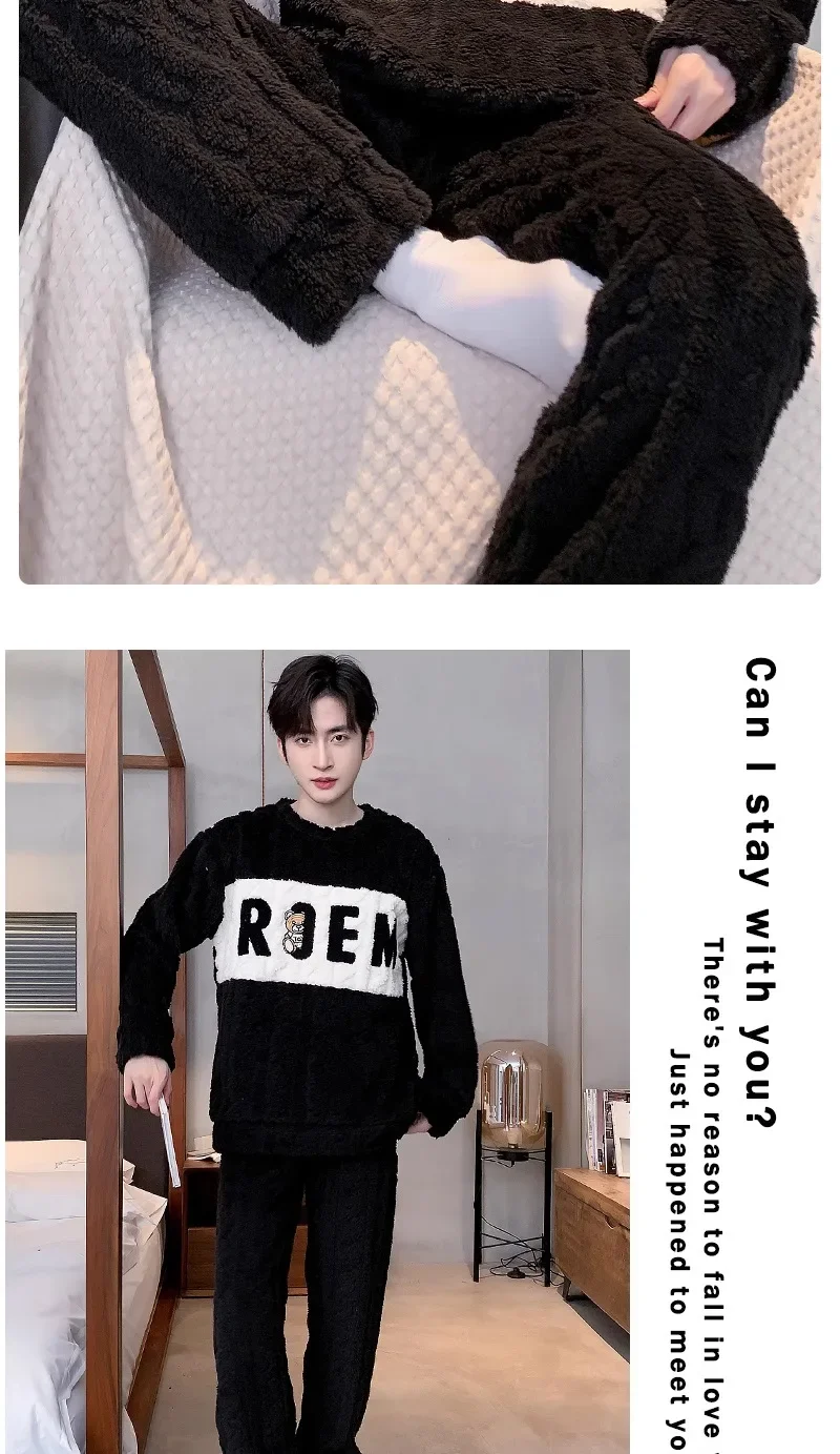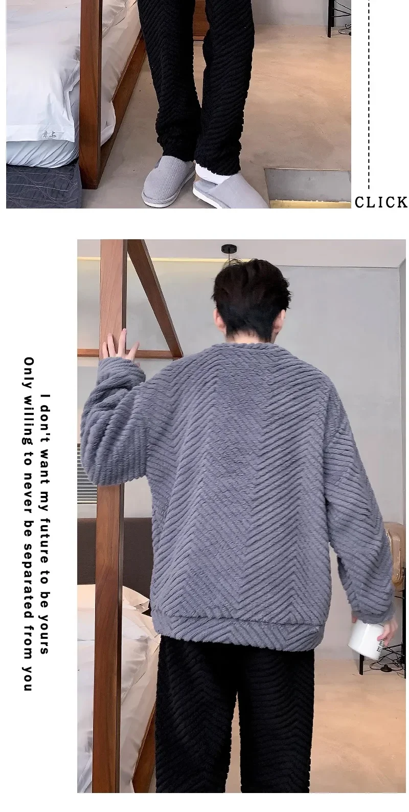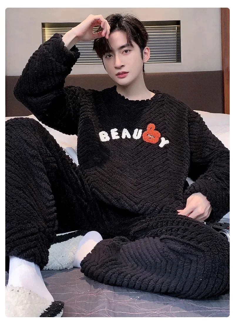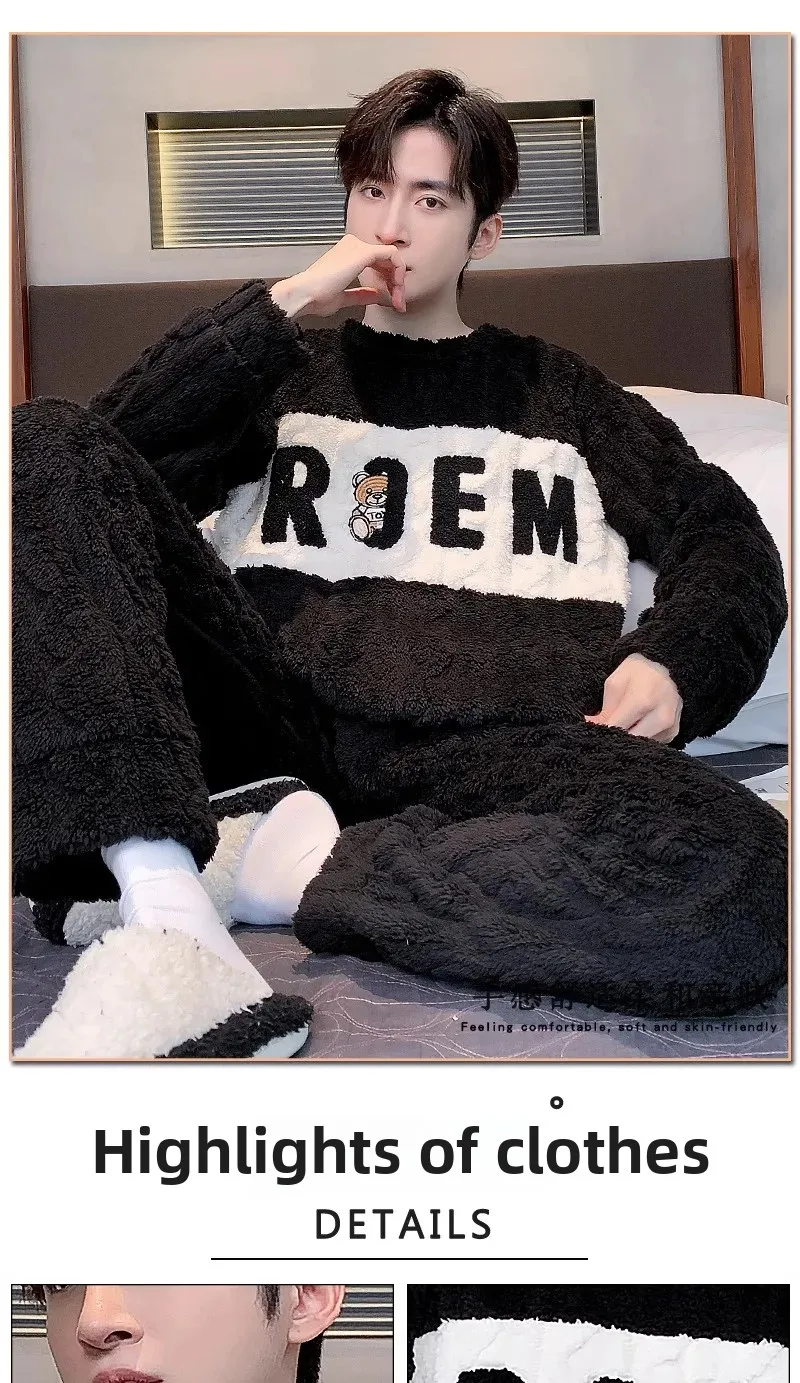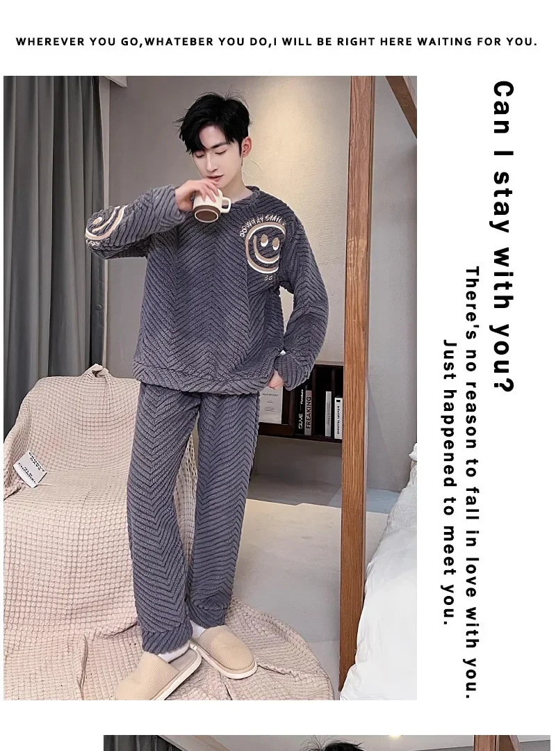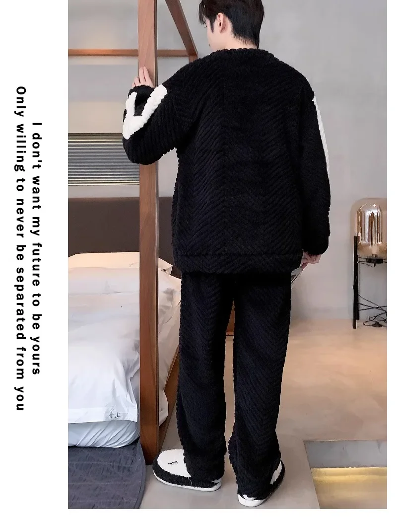 Pijamas gruesos de lana Coral para hombre, ropa cálida para el hogar, conjunto de dos piezas de franela, traje para casa de felpa para otoño e invierno
