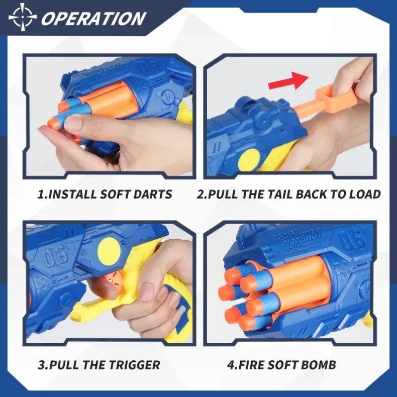 Pistola de dardos simple y efectiva Fiable y lo suficientemente potente para niños. Mucha munición proporcionada.