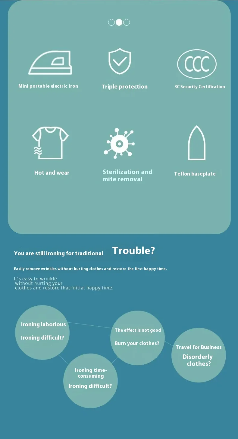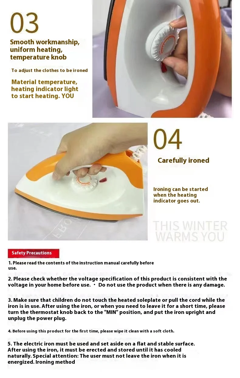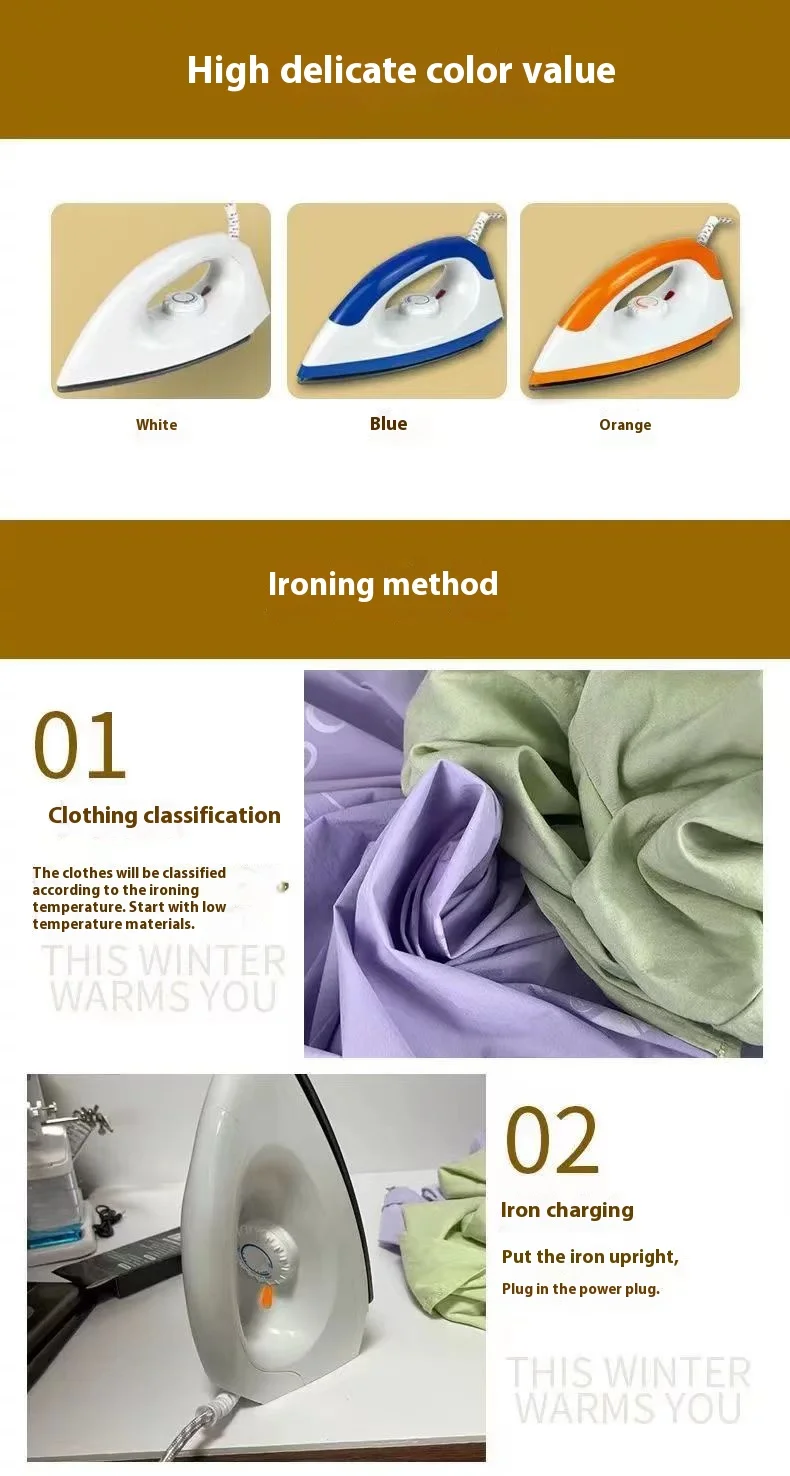 2. Instant ironing and wearing: Teflon bottom plate for quick ironing;
