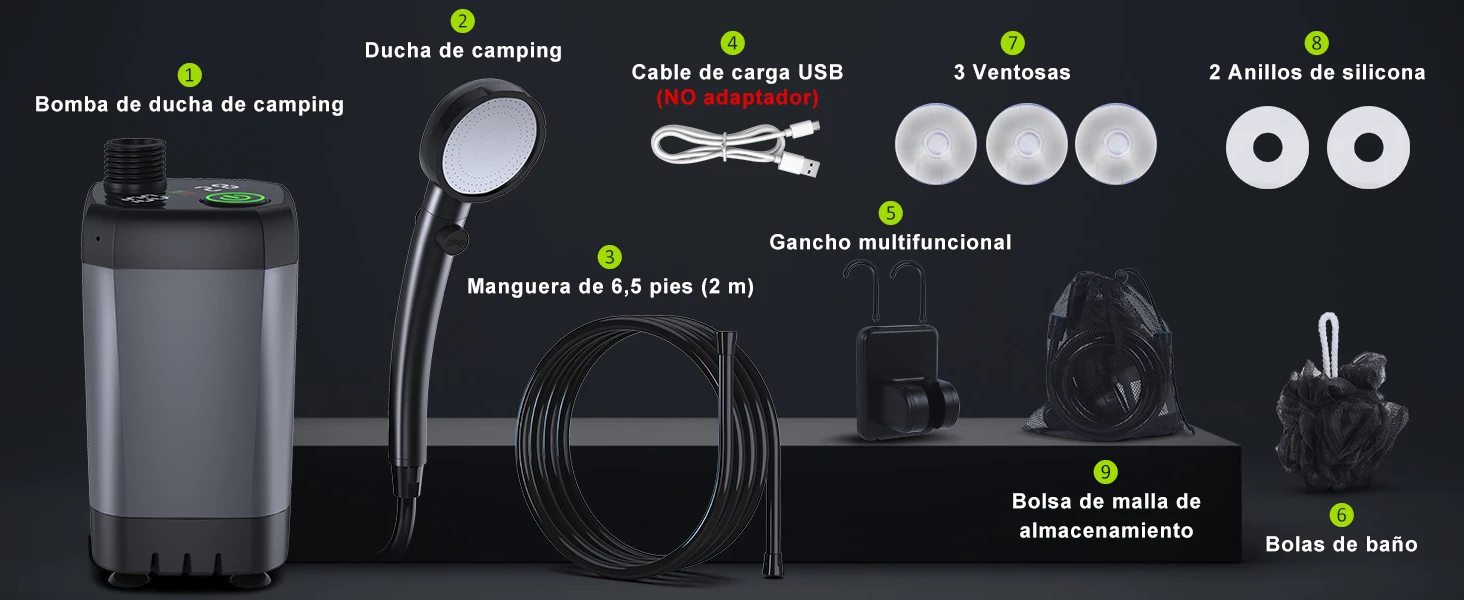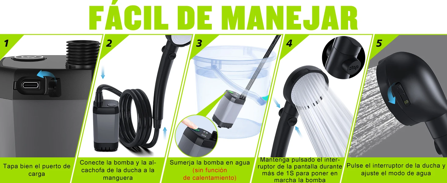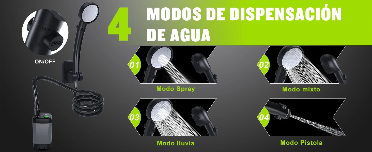 Portatil Recargable, [Larga Duración] Spopal 6000mAh Regadera Camping Electrica con Pantalla LED, 4 Modos de Pulverización, Ducha Portatil IPX7 Impermeable para Senderismo, Viajes, Coche
