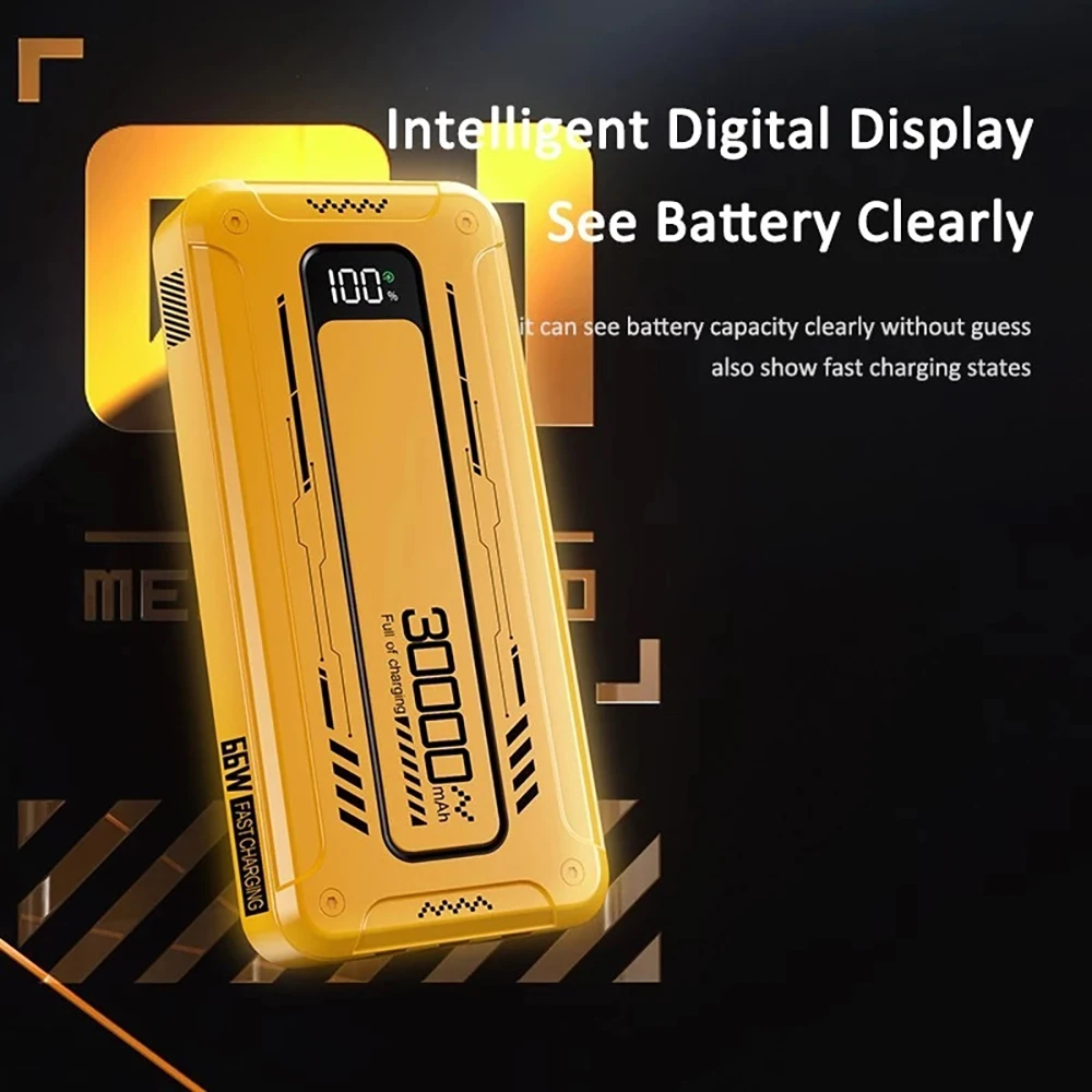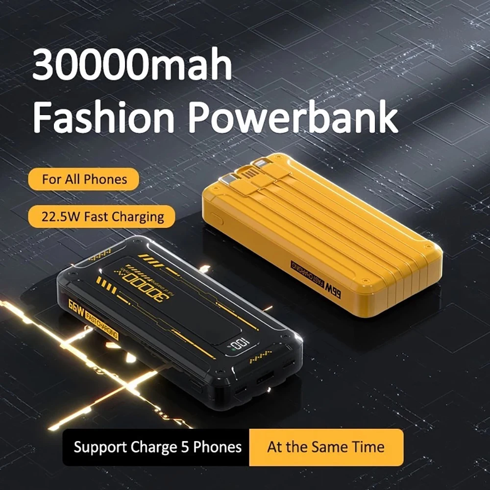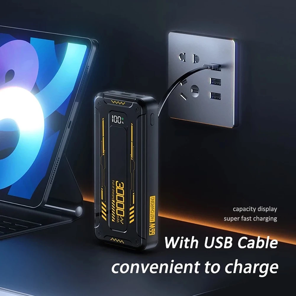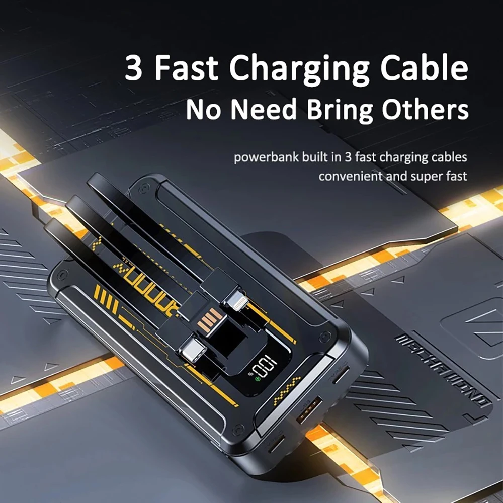 Power Bank Batería Portátil 30000mah YISEN Carga rápida de 22.5w 3 cables incorporados con luz LED