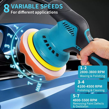 Máquina pulidora de coche, 8 engranajes, 2800-5500RPM, batería de litio multifunción portátil, dispositivo de pulido eléctrico para encerado de belleza de coche