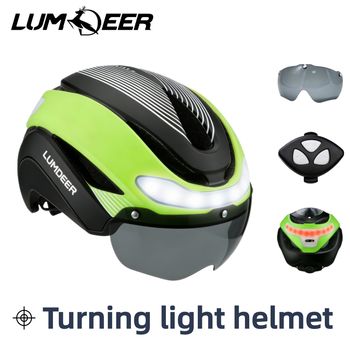 LUMDEER-casco con señal de giro para bicicleta de carretera, cascos magnéticos y visera solar, ultraligero, para adultos, delantero y trasero
