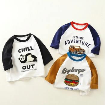 Camiseta de manga larga con estampado de dibujos animados para niño, Camisa de algodón puro a la moda, para primavera y otoño
