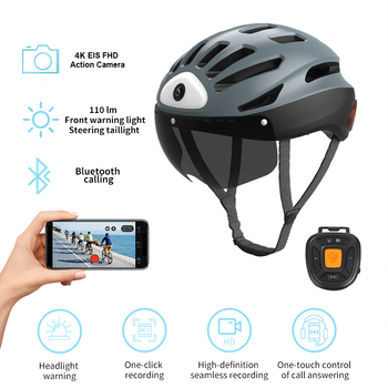 Casco de Ciclismo UHD 4K con Luz, Gafas de Sol para Montaña y Carretera, Cámara Deportiva ElS Recargable por USB, Casco para Bicicleta
