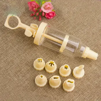 Pistola de crema de plástico de 8 bocas, pistola de montaje de flores, molde para galletas y pasteles, juego de montaje de flores transparente