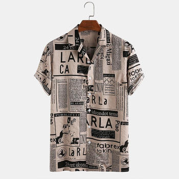 Camisas de manga corta para hombre, camisas hawaianas informales con estampado de periódico Vintage para vacaciones, talla grande S-5XL, 2022