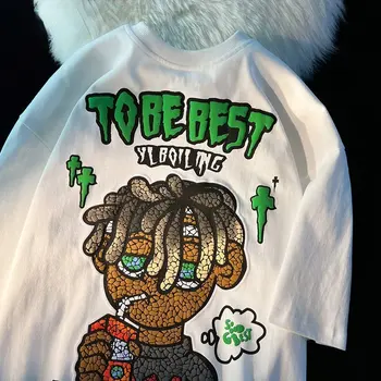Camiseta de manga corta con estampado de dibujos animados para hombre y mujer, Camiseta holgada de media manga, moda urbana europea y americana