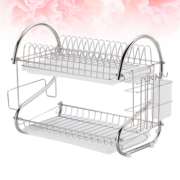 Escurridor de platos de acero inoxidable para cocina, escurridor de platos de 2 niveles a prueba de óxido con tabla de secado y fregadero de utensilios