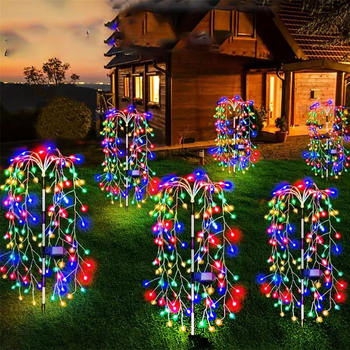 Luz de jardín con energía Solar, luz de petardo Solar para exteriores, decoración de cadena de luces de fuegos artificiales solares para camino de calle y césped