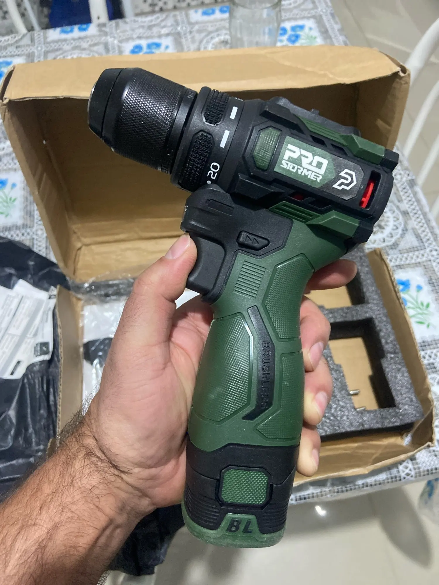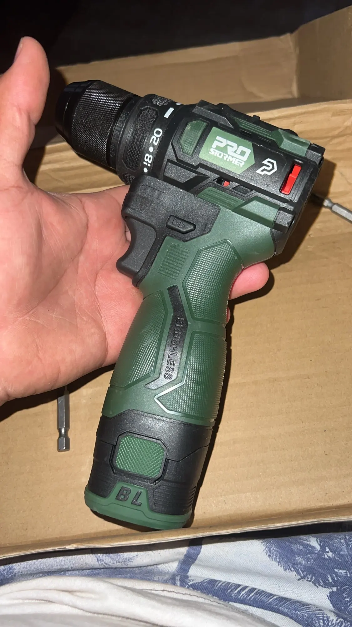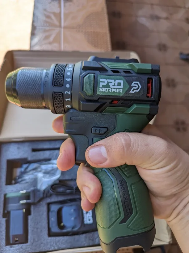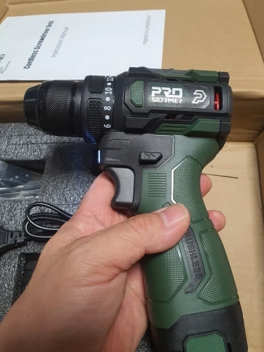 Entrega rápida y satisfecho con el producto. Lo compré a un precio bajo y es exactamente lo que necesitaba. Como es sin escobillas, la potencia es buena y la batería dura mucho tiempo. El peso no se siente tan pesado en comparación con una broca de 12 voltios. Sin embargo, tal vez debido a la gran potencia, el sonido es muy fuerte. Y la palanca para ajustar el 1er y 2do engranaje es demasiado rígida. Aún así, creo que es un muy buen producto para uso doméstico.