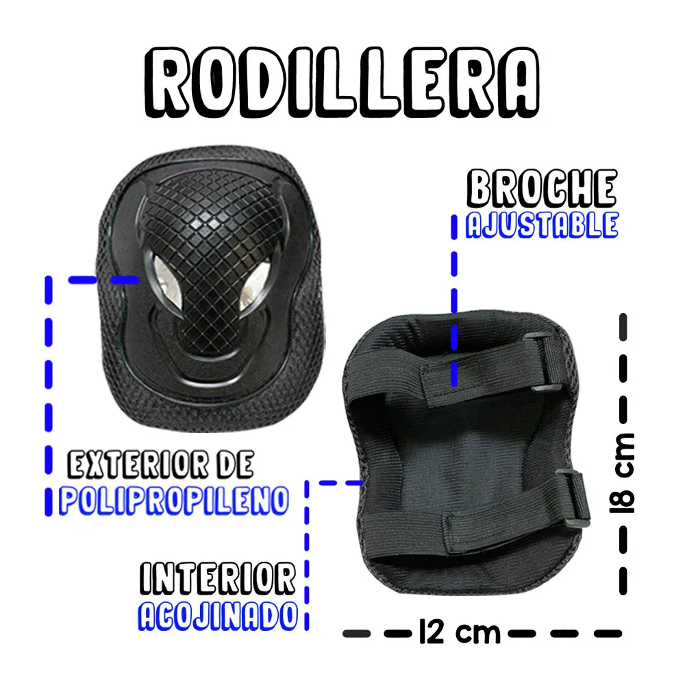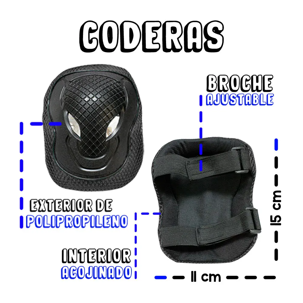 Incluye: Rodilleras, Coderas, Muñequeras.