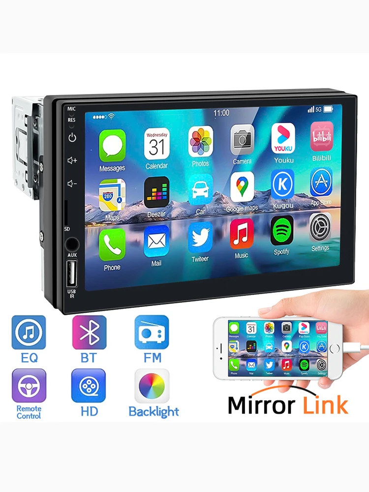 Radio con GPS para coche, reproductor Multimedia con pantalla táctil de 7 pulgadas, 1 Din, MP5, FM, ISO, entrada auxiliar de alimentación, Bluetooth, USB, Mirror Link, autorradio Universal