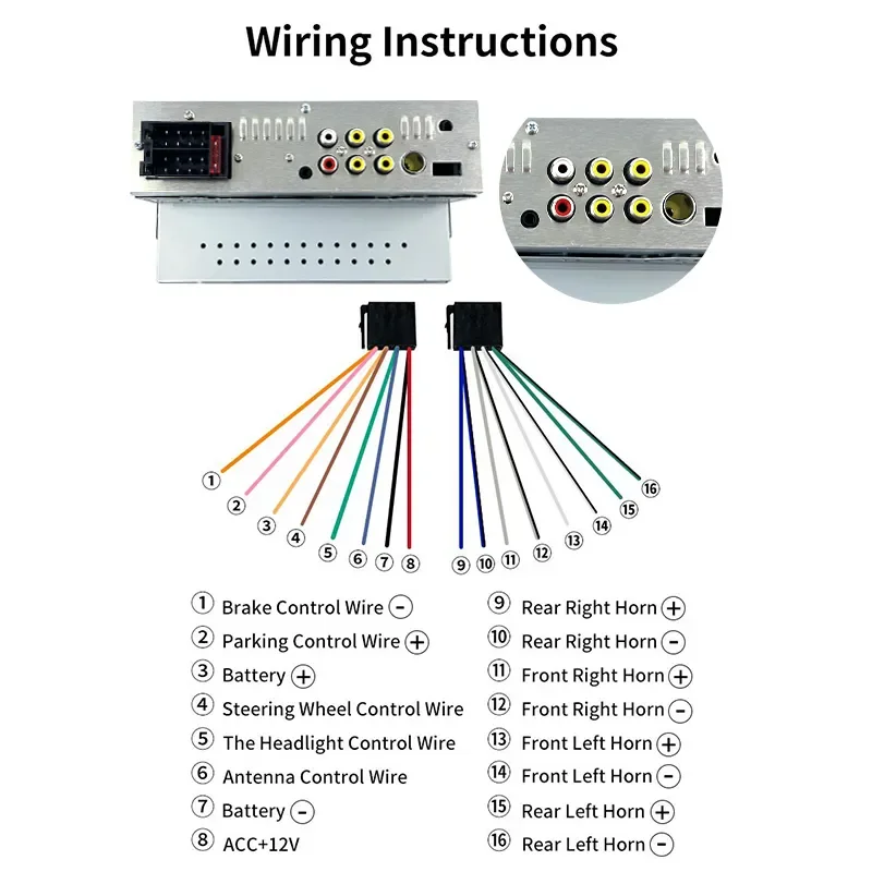 Control silencioso y ruidoso. Salida de audio RCA L / R. Salida de alta potencia (4 altavoces).