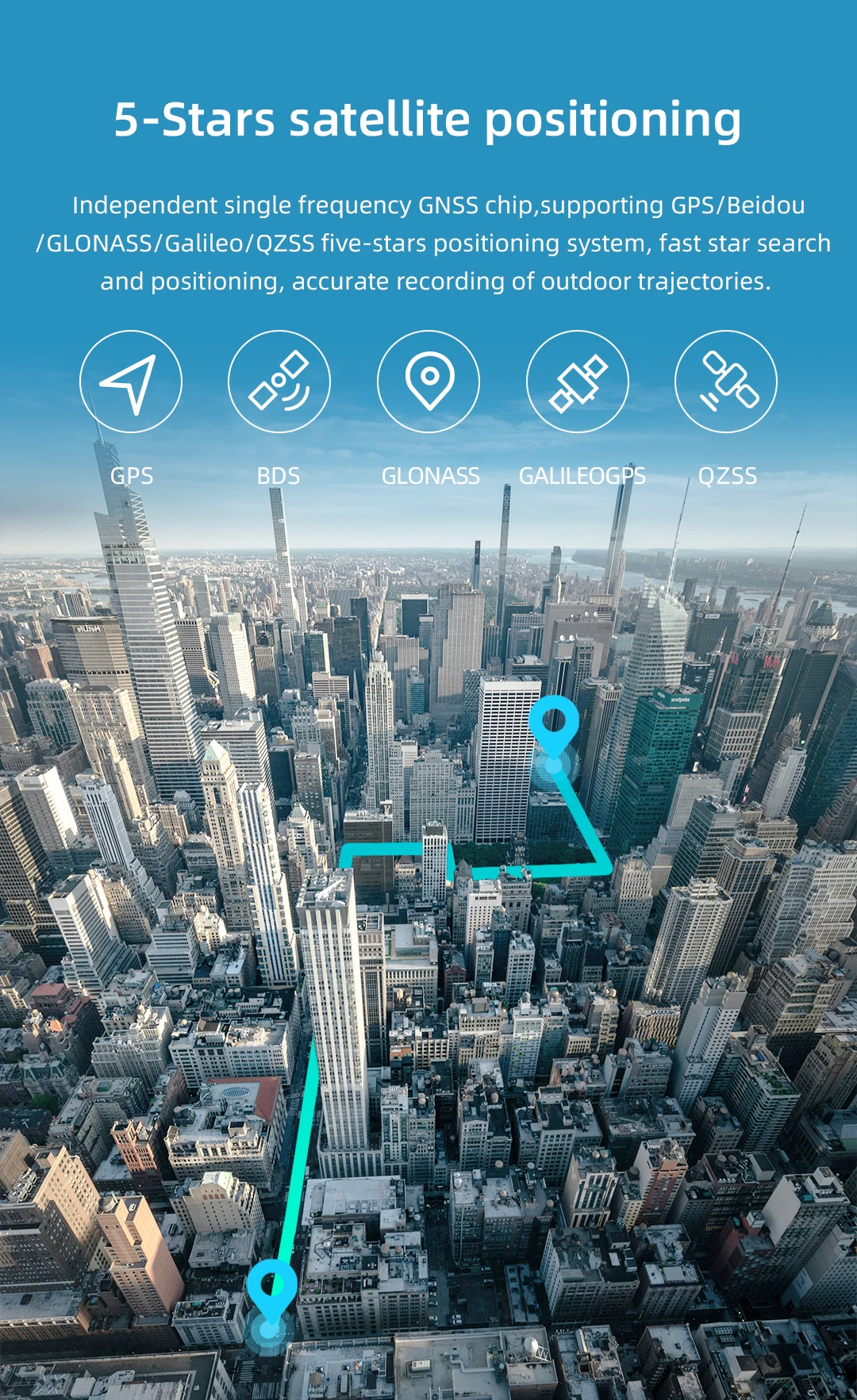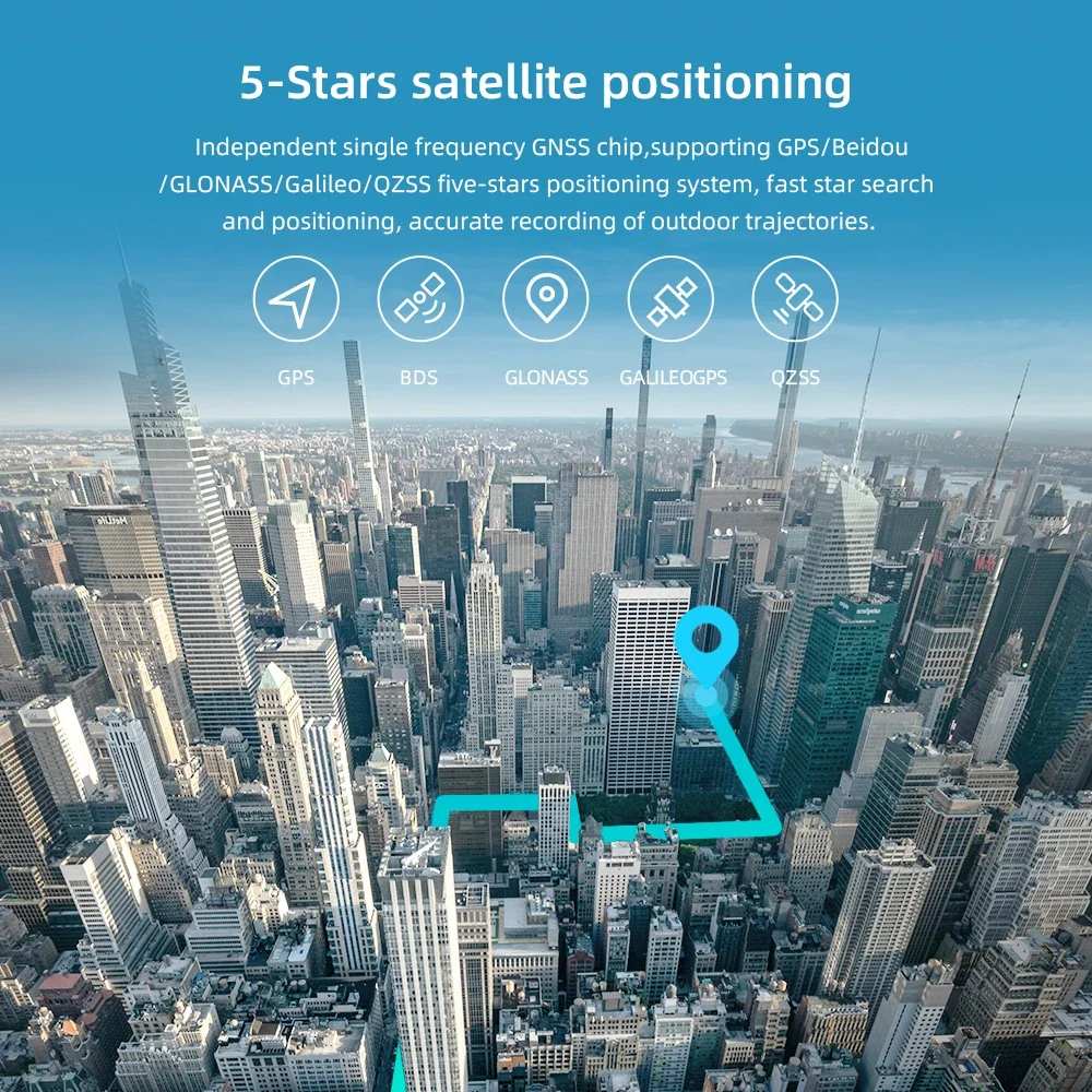 Chip GNSS de frecuencia única independiente, compatible con sistema de posicionamiento de cinco estrellas GPS/Beidou/GLONASS/Galileo/QZSS, búsqueda y posicionamiento rápido de estrellas, grabación precisa de trayectorias exteriores.