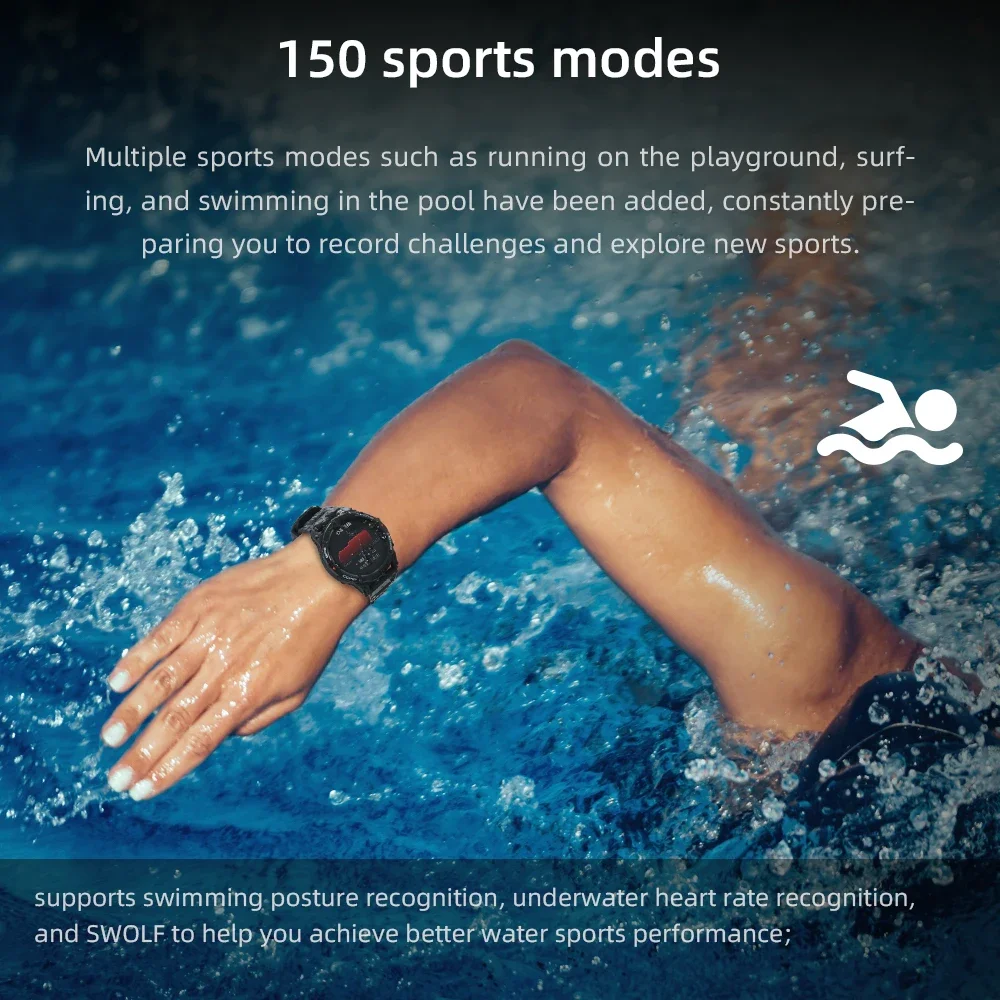Natación en la piscina: admite el reconocimiento de la postura de natación, el reconocimiento de la frecuencia cardíaca bajo el agua y el SWOLF para ayudarlo a lograr un mejor rendimiento en deportes acuáticos;