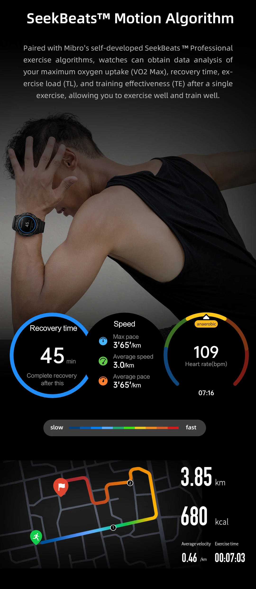 Combinado con el algoritmo de ejercicio profesional SeekBeats de desarrollo propio de Mibro, los relojes pueden obtener análisis de datos de su máxima absorción de oxígeno (VO2 Max), tiempo de recuperación, carga de ejercicio (TL) y efectividad del entrenamiento (TE) después de un solo ejercicio, lo que le permite hacer ejercicio bien y entrenar bien.