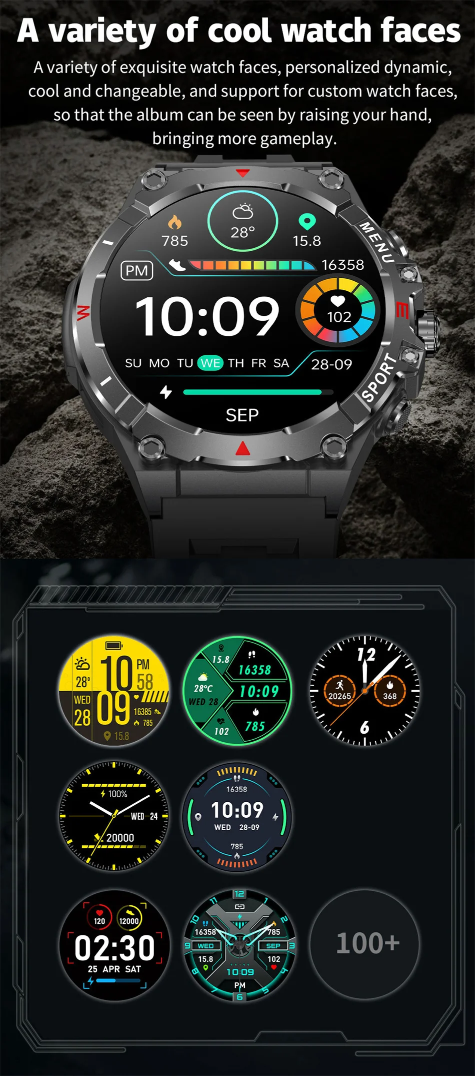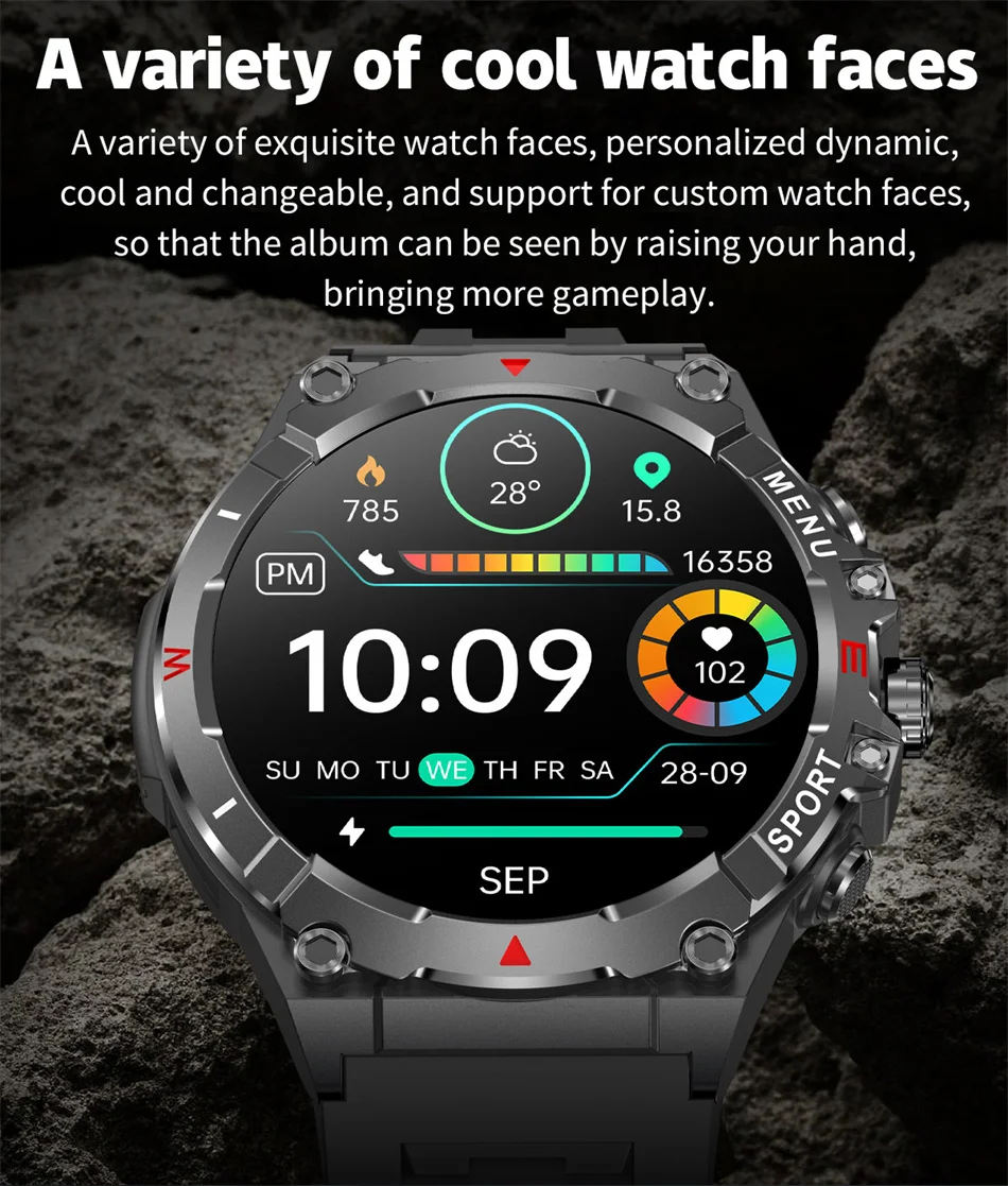 Posicionamiento GPS, detección de gravedad, podómetro, presión barométrica, altitud, marcación de imagen de fondo personalizada, 5 diales, función de pulsación de dial de soporte, compatible con lista meteorológica de una semana, llamada bluetooth, música incorporada, desconexión de ver llamadas para recibir llamadas, registro de llamadas, reloj reproducción de música, registro deportivo, modo multideporte (107 modos deportivos: caminar, correr, andar en bicicleta, saltar la cuerda, bádminton, pelota azul, fútbol Natación), podómetro de ejercicio, monitor de calorías,Recordatorio de sedentarismo, actualización OTA.