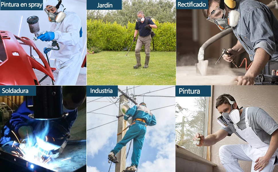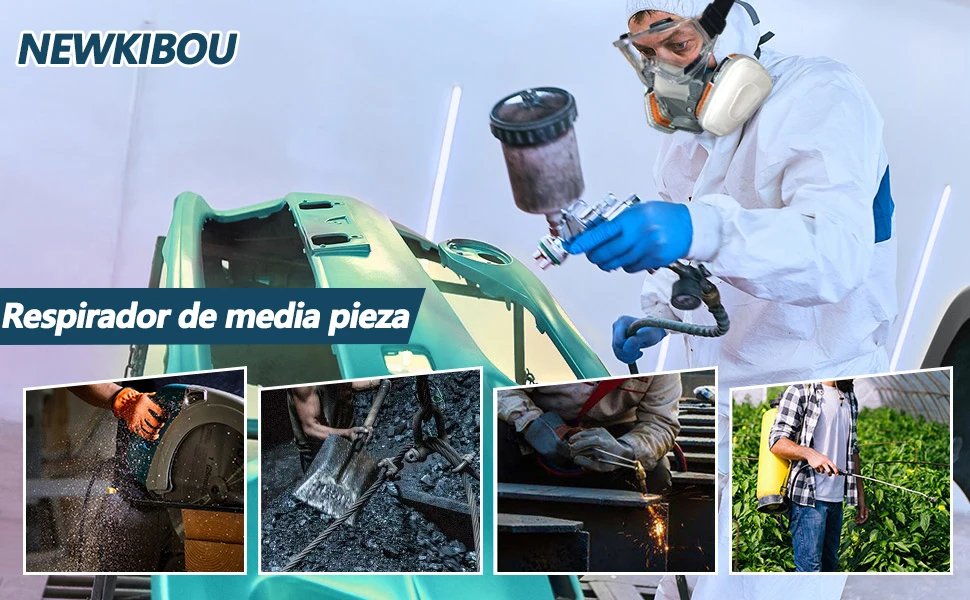 【WIDE APPLICATION】 : La media máscara facial puede bloquear múltiples sustancias peligrosas ,áreas de trabajo con productos químicos, vidrio, metal, pintura, agricultura, formaldehído y otros vapores / gases irritantes. Protector contra partículas de polvo en trabajos mecánicos como soldadura, aserrado, amolado, graffiti, etc.