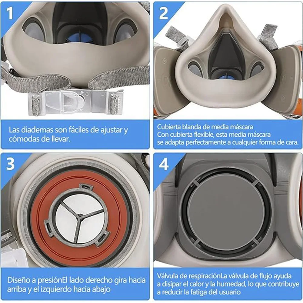 【DOBLE PROTECCIÓN】: media mascarilla facial profesional utiliza un sistema de filtración dual para bloquear eficazmente el 97% de los vapores/gases orgánicos, humos, polen, polvo y otras partículas en el aire. Es el dispositivo de protección ideal para usted en el trabajo.