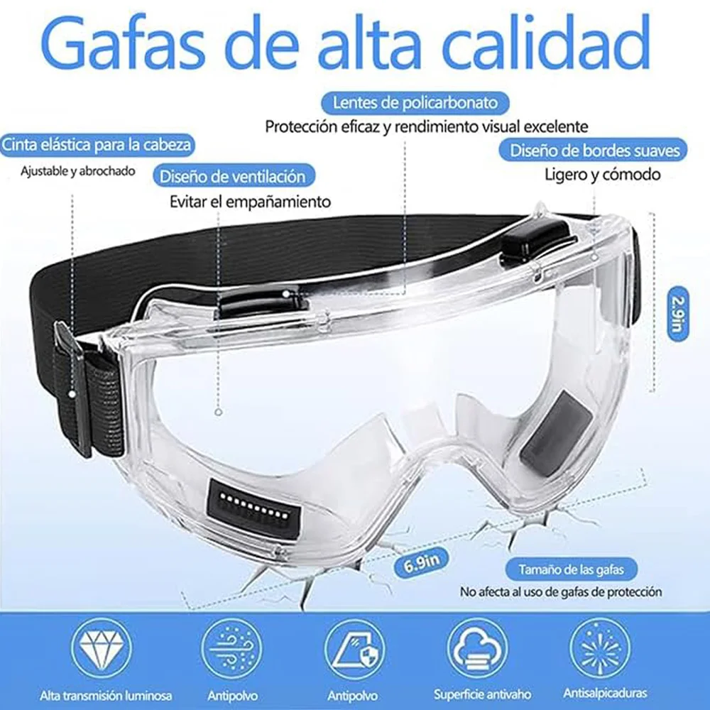 【CORREA DE COMODIDAD COMPLETAMENTE AJUSTABLE】: La cubierta de la cara y el cinturón de correa de gafas de seguridad son adecuados para la mayoría de los tamaños de cabeza, diseñados para un uso ajustado y cómodo. Salpicaduras antivaho integral para evitar cualquier invasión de sustancias diminutas. Puedes ver todo lo que necesitas ver.