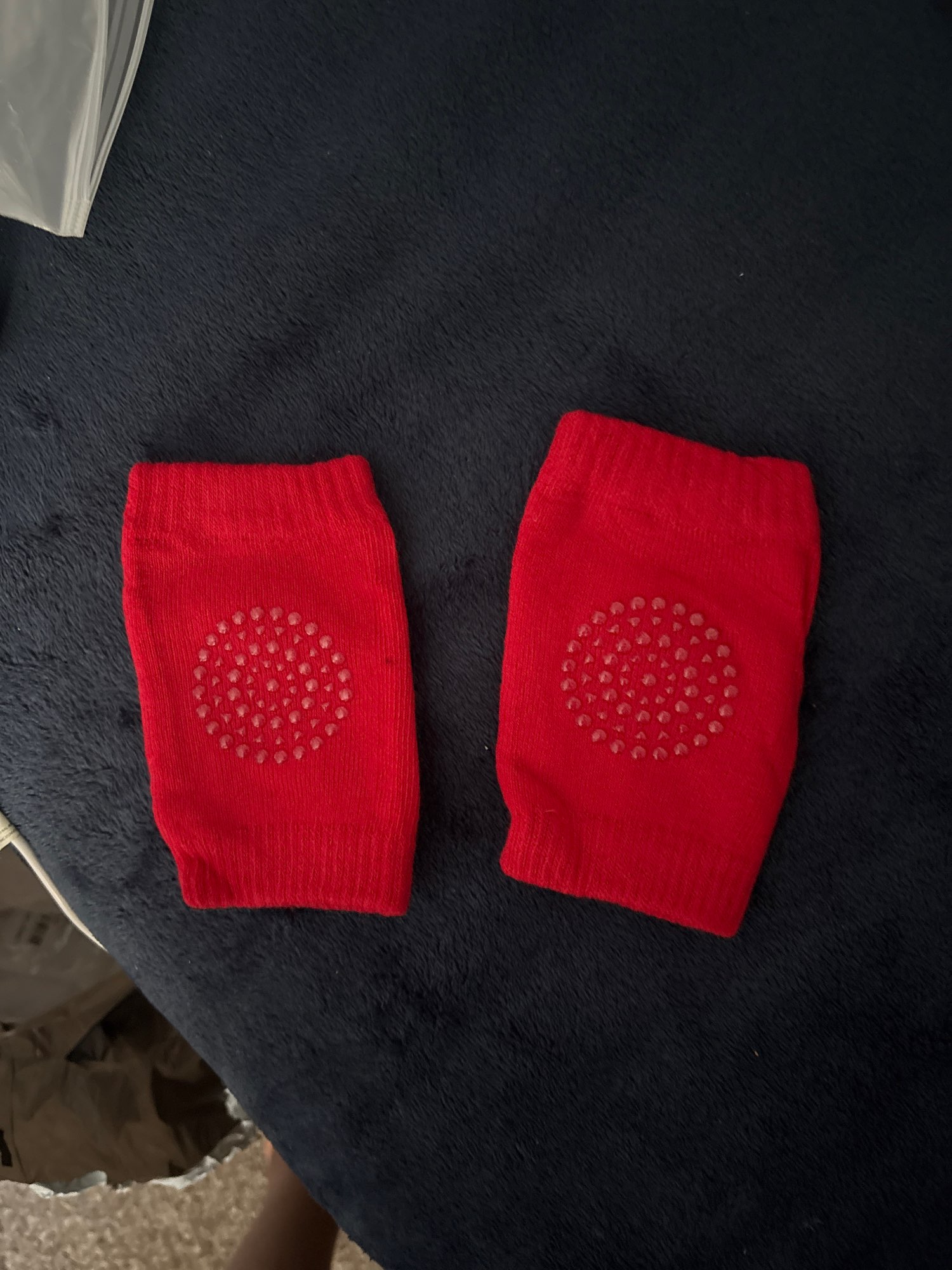 Estas rodilleras son agradables y suaves por dentro. Son muy elásticas, y el agarre en la parte de la rodilla de la rodillera evitará que el bebé se resbale. Debería haber comprado más de dos pares.