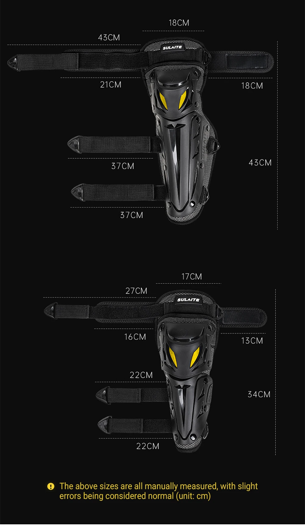 Para quienes creen que son muy pequeñas: yo mido 1.90m (6'3") y tengo piernas gruesas, y en la fotografía llevo puestas las rodilleras sobre pantalones de motociclista de cuero que ya incluyen acolchado y goma eva en las rodillas -- esto es, llevo protecciones *encima* de otras protecciones, y como pueden ver no hay problemas con esto. El sistema de broche rápido es excelente y con esto no sólo tienes que ajustar las correas sólo una vez, preservando el velcro, sino que también hace ponérselas o sacárselas algo rápido y sencillo. Y más encima son certificadas. ¿Qué más pedir por el precio? Recibidas muy rápido tras 10 días. ¡Muy recomendadas!