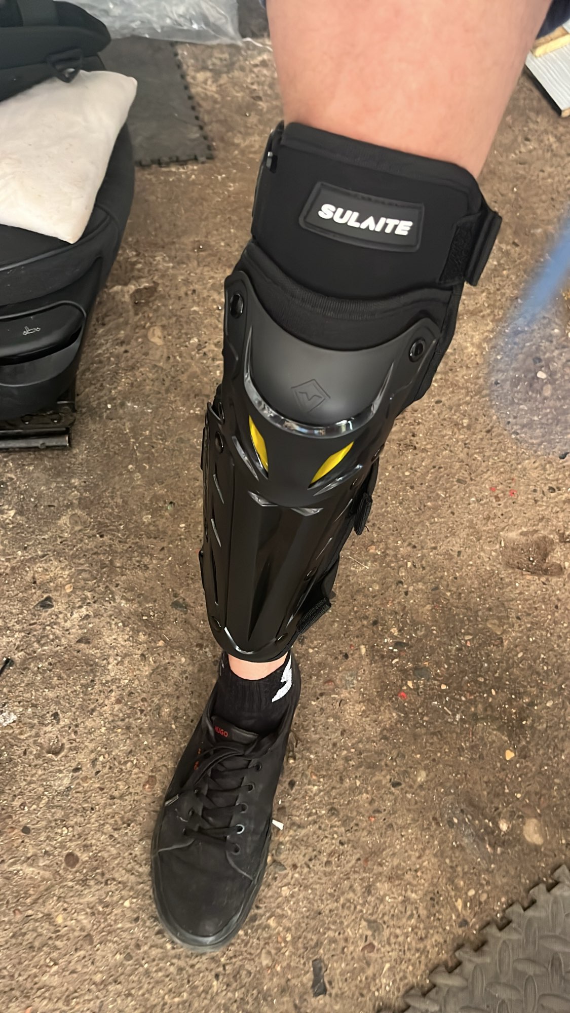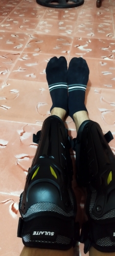 Muy buenos protectores, tienen correas de velcro ajustables que necesita ajustar solo una vez y después de eso puede usar hebillas de plástico, lo que significa que los velcros podrían durar mucho tiempo y las hebillas son más rápidas y fáciles de usar.