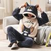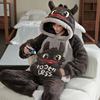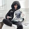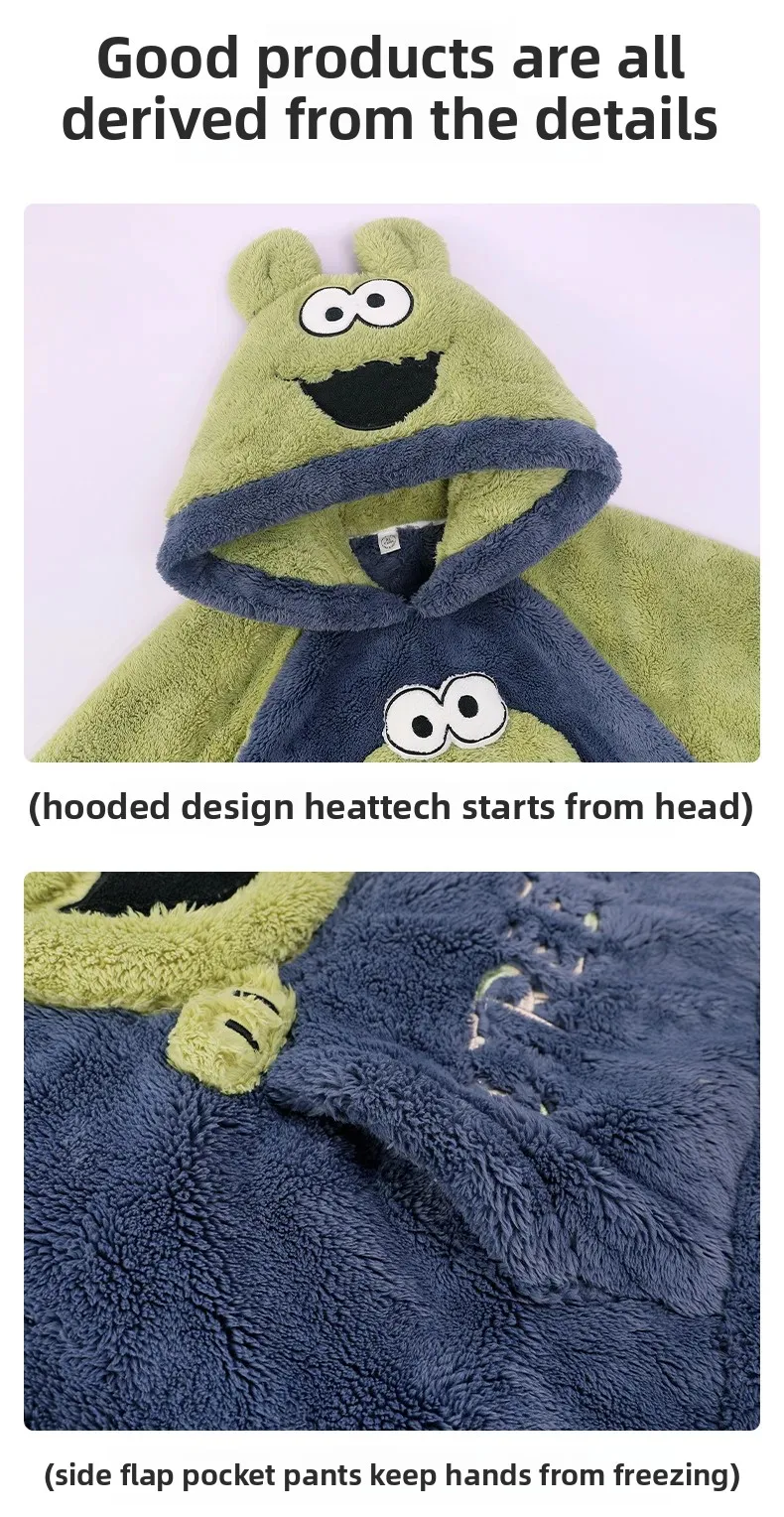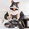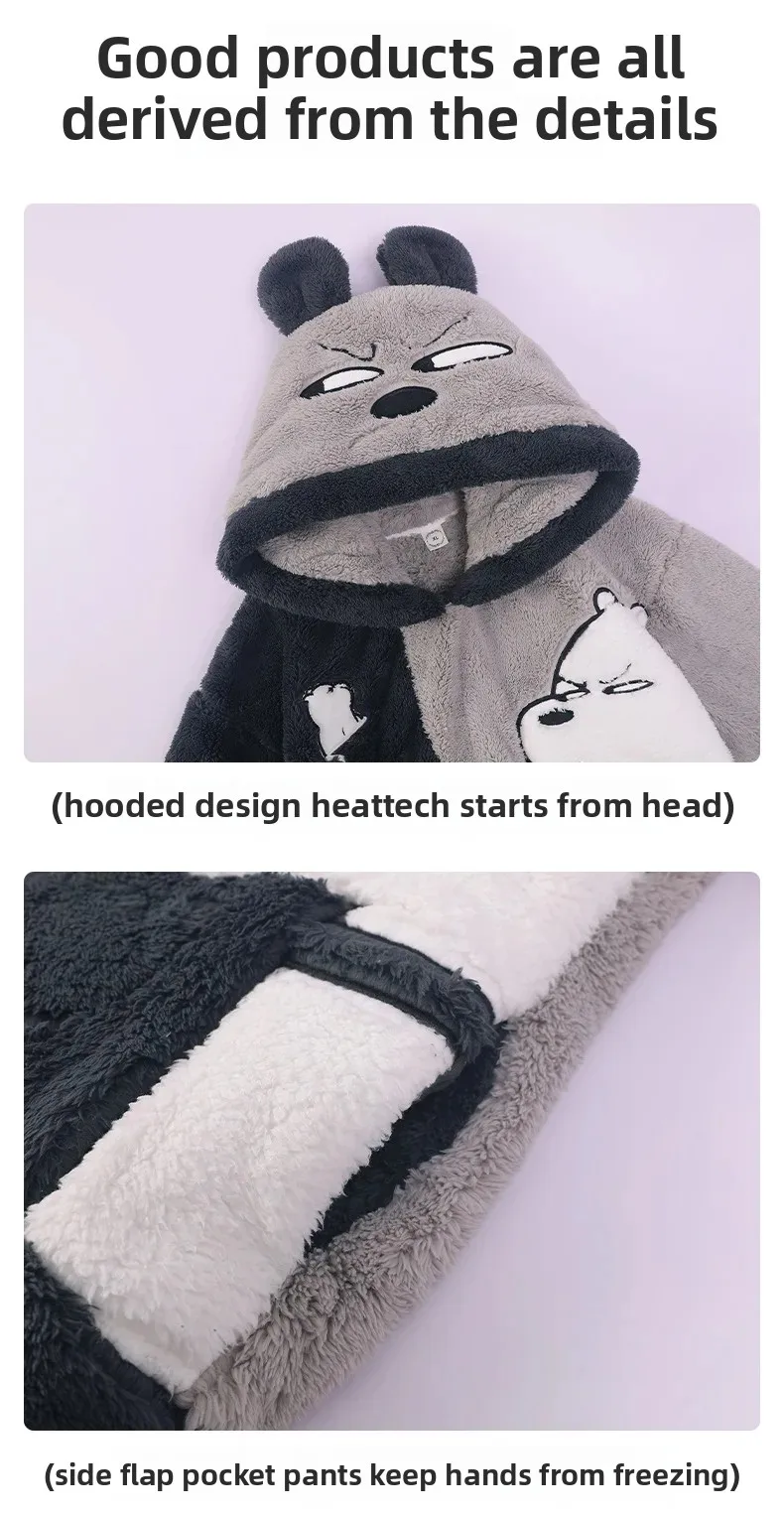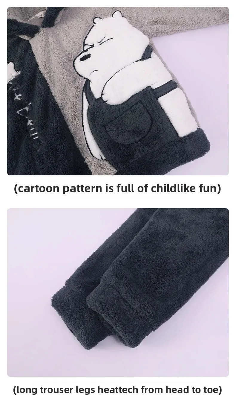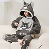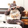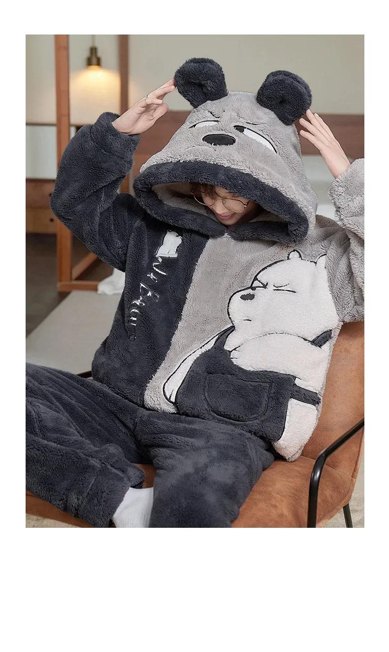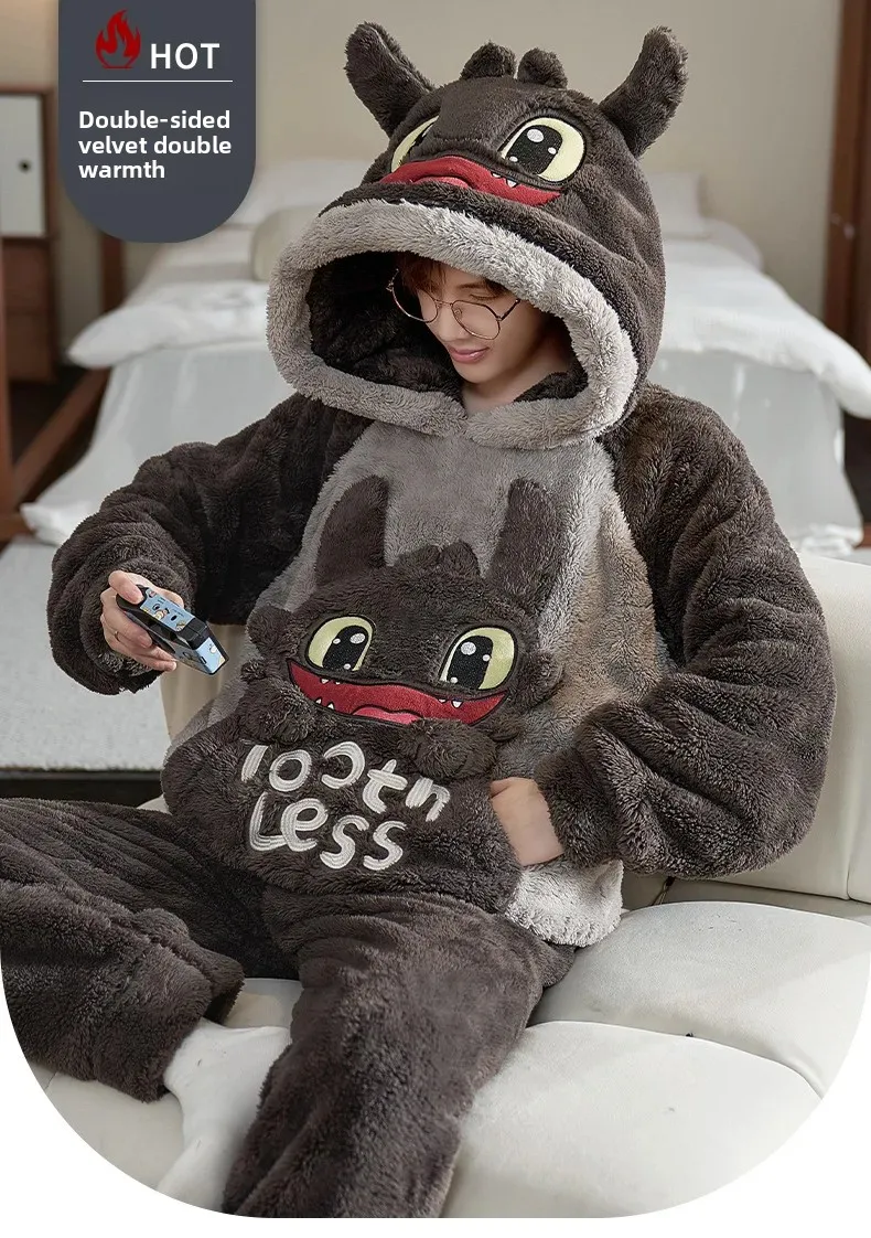 Ropa de dormir gruesa de lana Coral para hombre, conjunto de ropa para el hogar con capucha de dibujos animados, traje de ocio para el hogar juvenil, pijamas cálidos y acogedores para invierno
