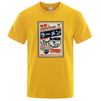 Camiseta con póster de menú japonés Puffer Fish Ramen, camiseta divertida a la moda para hombre, ropa cómoda de gran tamaño, camisetas informales de algodón