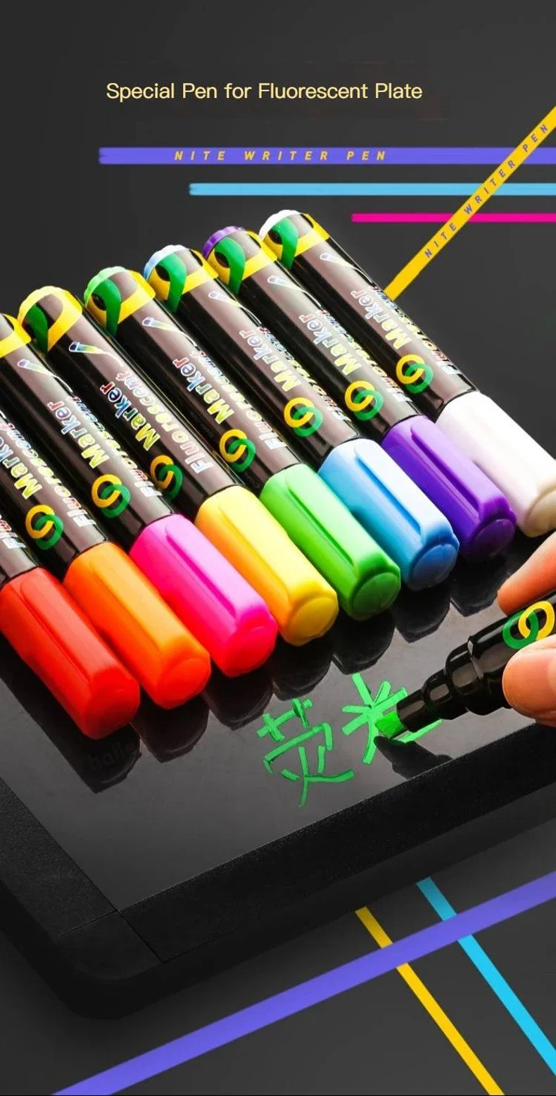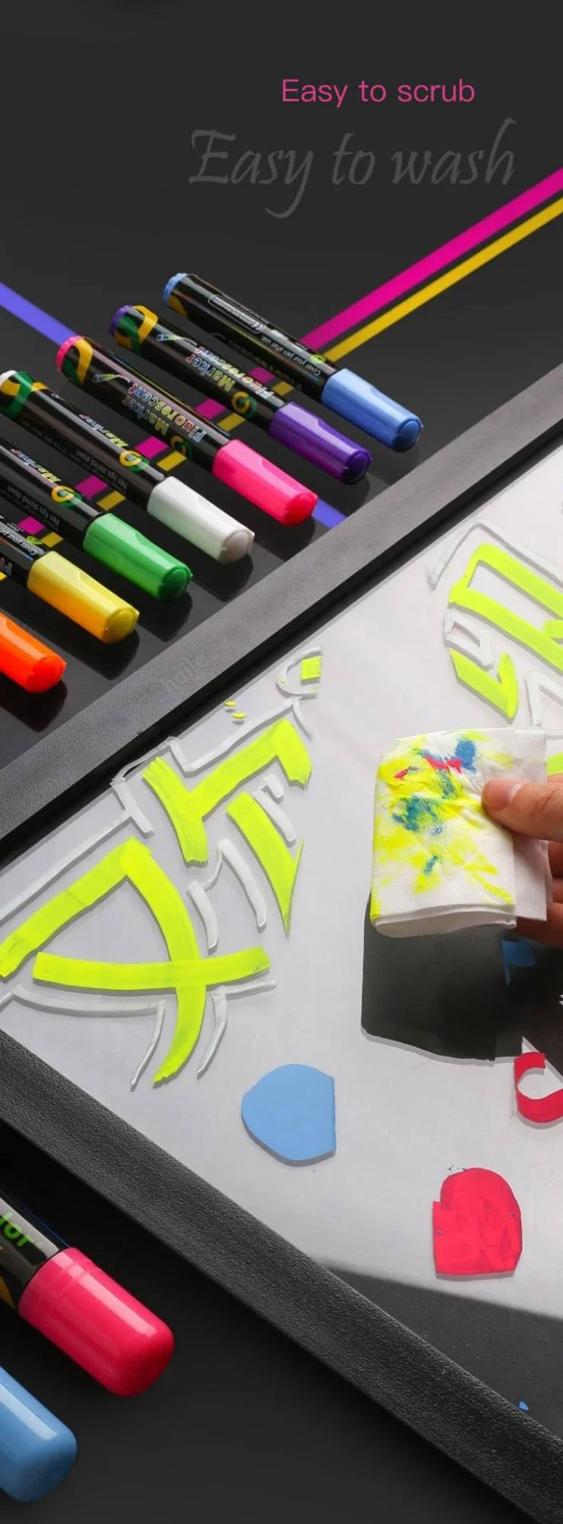 Rotuladores fluorescentes LED borrables, rotuladores de tiza, papelería para tablero de escritura LED, pintura, Graffit, 8 colores por juego, 5mm, 6mm, 8mm, 10mm