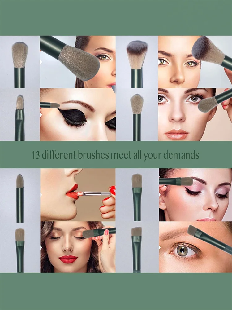 4. diseño elegante: el juego de brochas de maquillaje de 13 piezas se ve muy elegante y a la moda con el popular y elegante color verde, imprescindible en tu bolsa de cosméticos