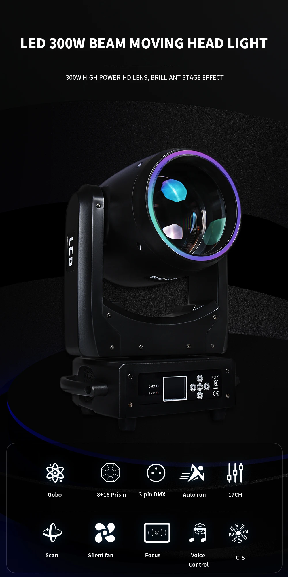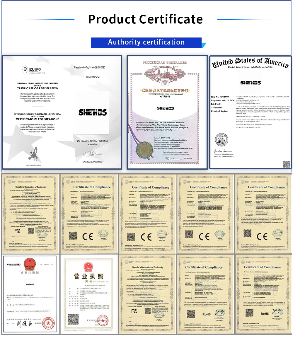 * Modos de control: DMX512, modo automático, modo de sonido, maestro y esclavo, RDM
