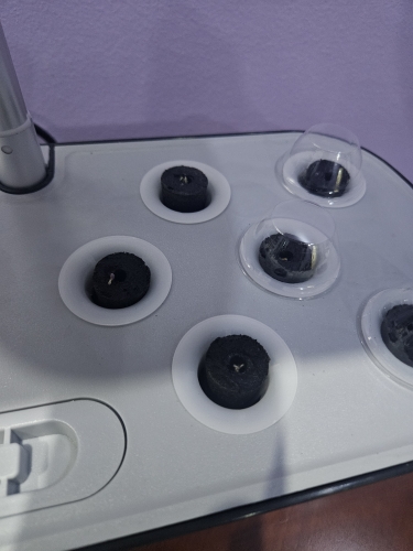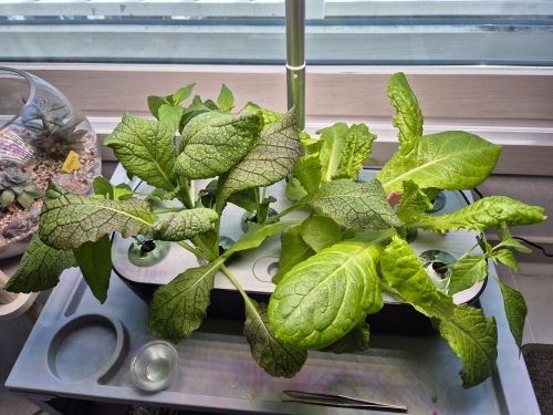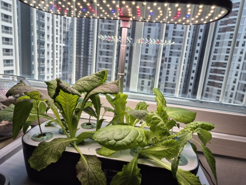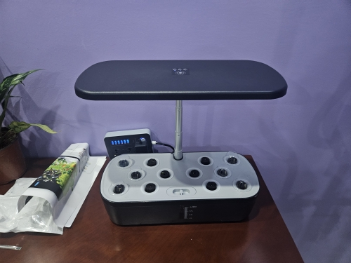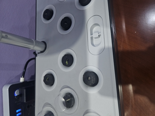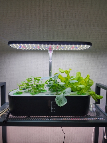 Recibí la entrega rápidamente en 6 días. También compré el enchufe con anticipación y compré por separado una pegatina para pegar en la entrada para evitar el óxido. Pregerminé las semillas en casa y tan pronto como llegaron, las puse en la esponja. No es tan fácil como pensé insertar las raíces. Sigieron cayendo mientras crecían, así que de ahora en adelante, tendré que poner las semillas directamente en la esponja y empezar. Han pasado 3 semanas desde que lo planté, y ha crecido tan bien que ya tuve que podarlo una vez. Las hojas de lechuga han crecido demasiado, y las hojas de pimiento en los bordes no pueden capturar la luz, así que la próxima vez tendré que cultivar solo un tipo.