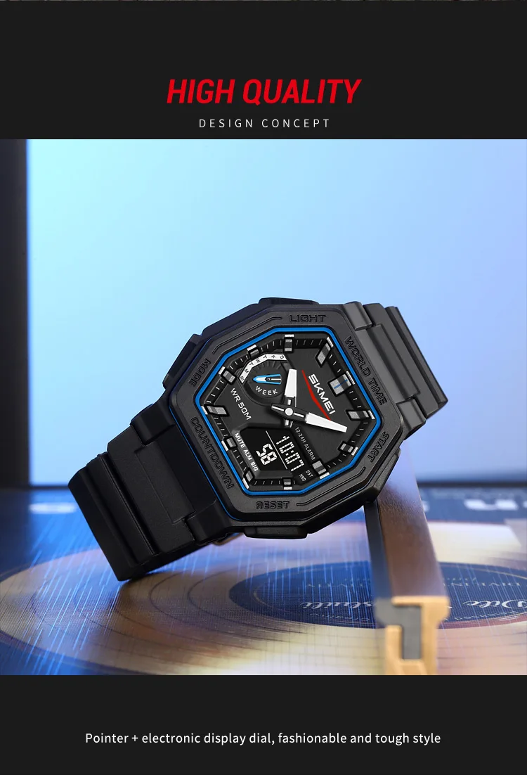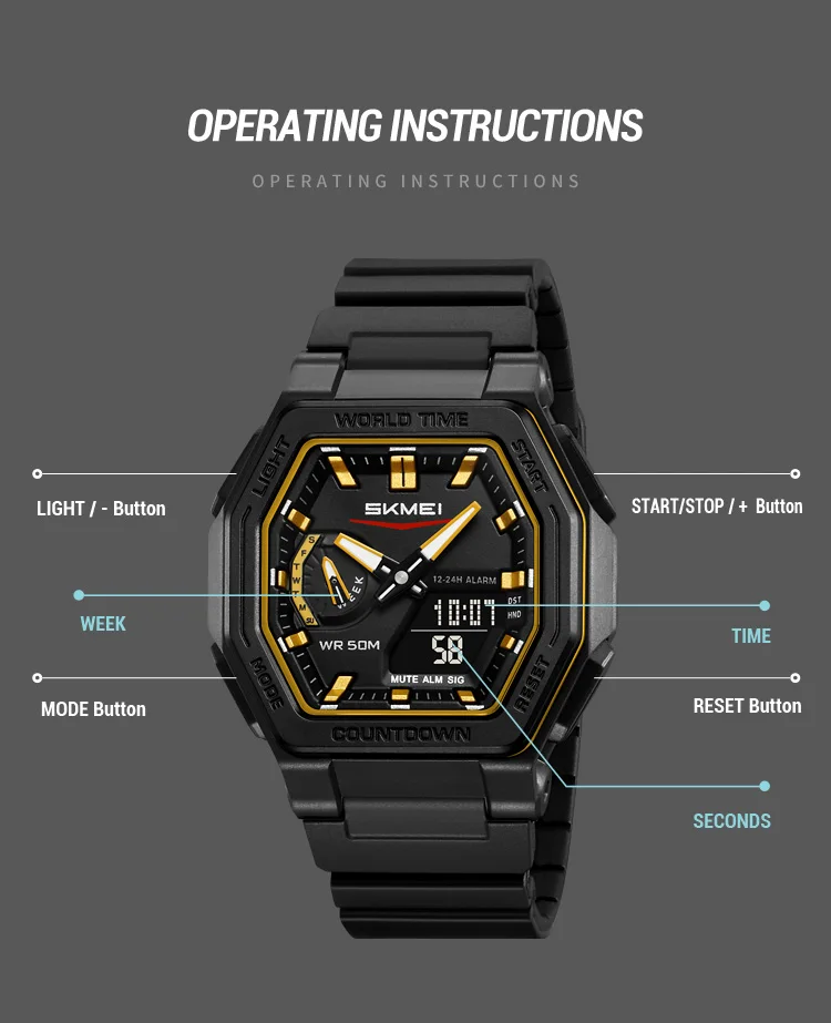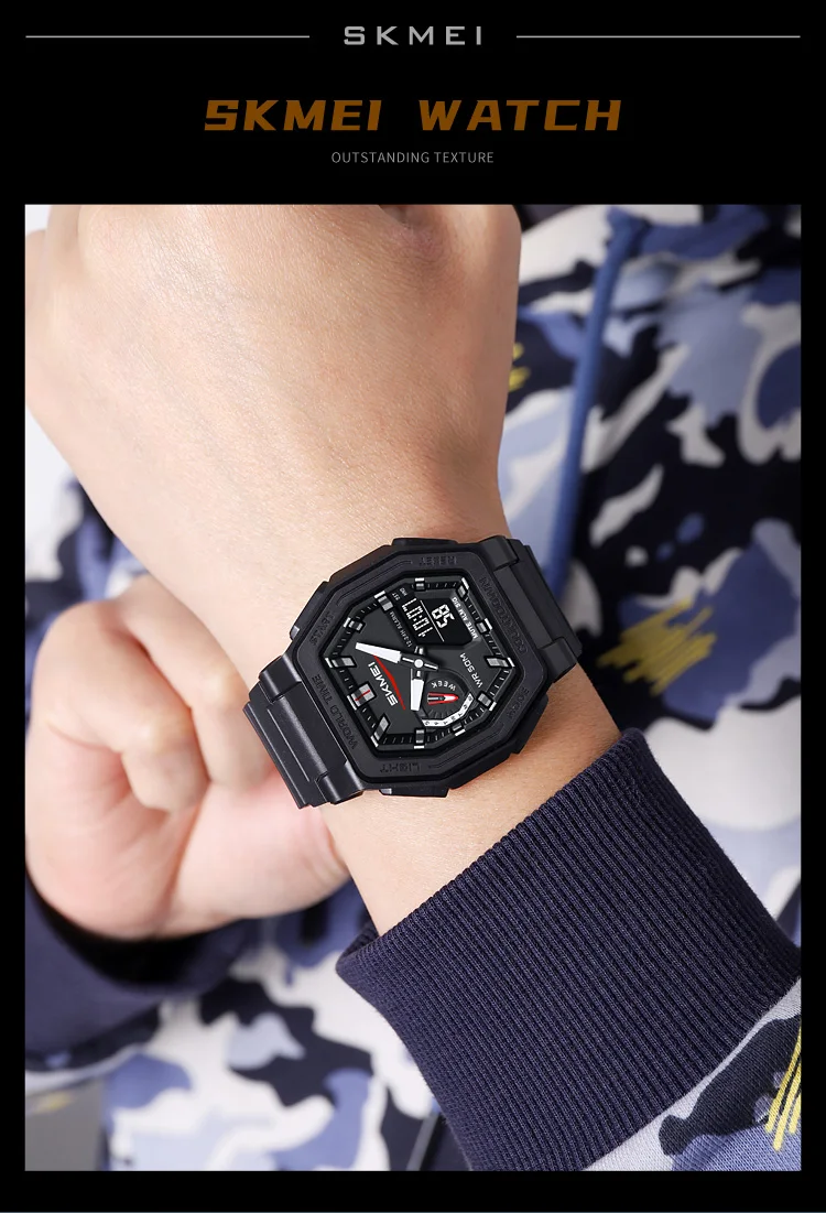 SKMEI Casual doble pantalla Digital relojes de cuarzo resistentes al agua calendario cronómetro analógico alarma LED luz nocturna reloj 2438