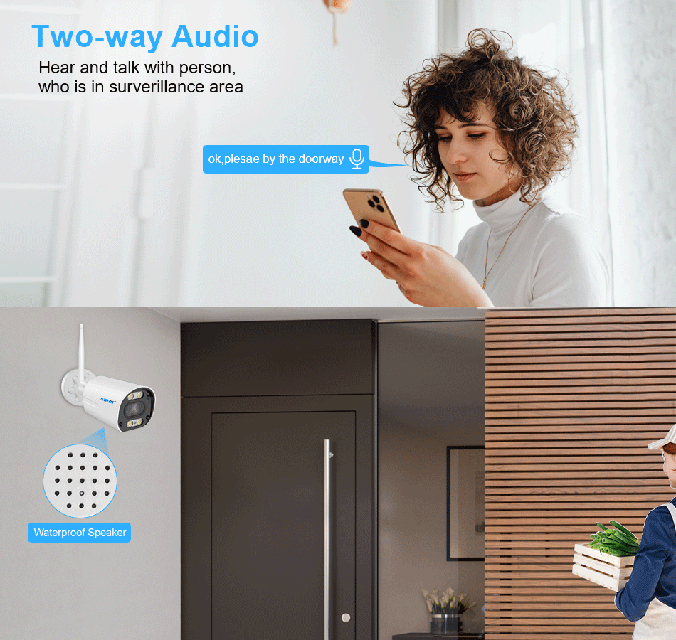 Puede hablar con cualquier persona que se acerque a la cámara (advertir a alguien que salga de su casa)