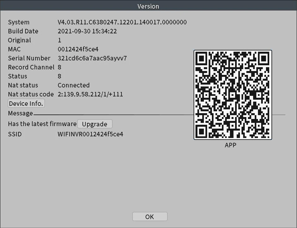 (2) Vaya a Mian Menu- Advanced-Version, verifique que el Estado de la red esté conectado, lo que significa que su NVR está conectado a la red.