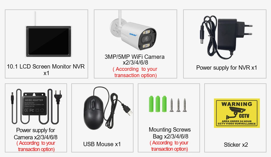 Cámara WiFi de 2/3/4/6/8 * 3MP/5MP (según su opción de transacción)