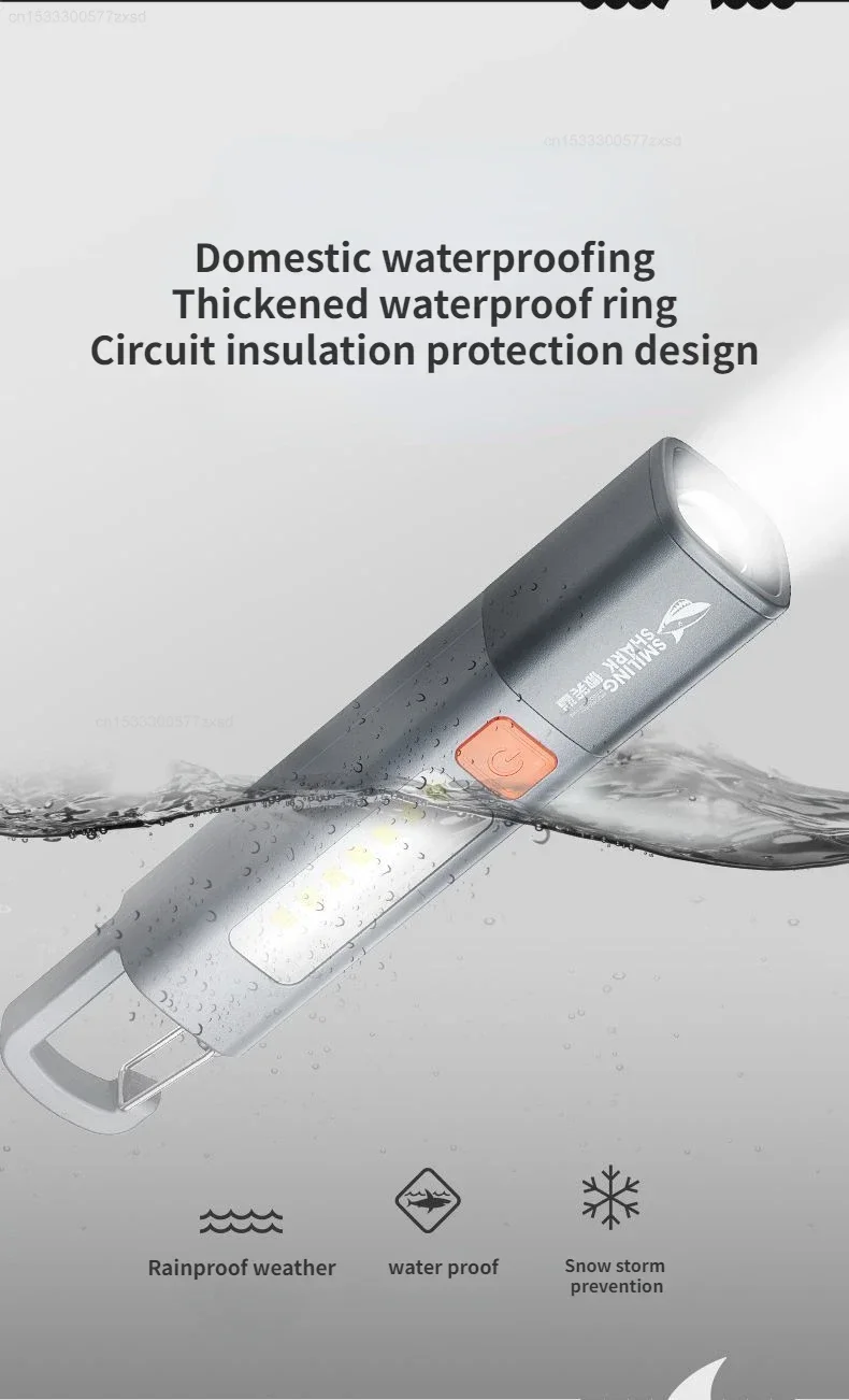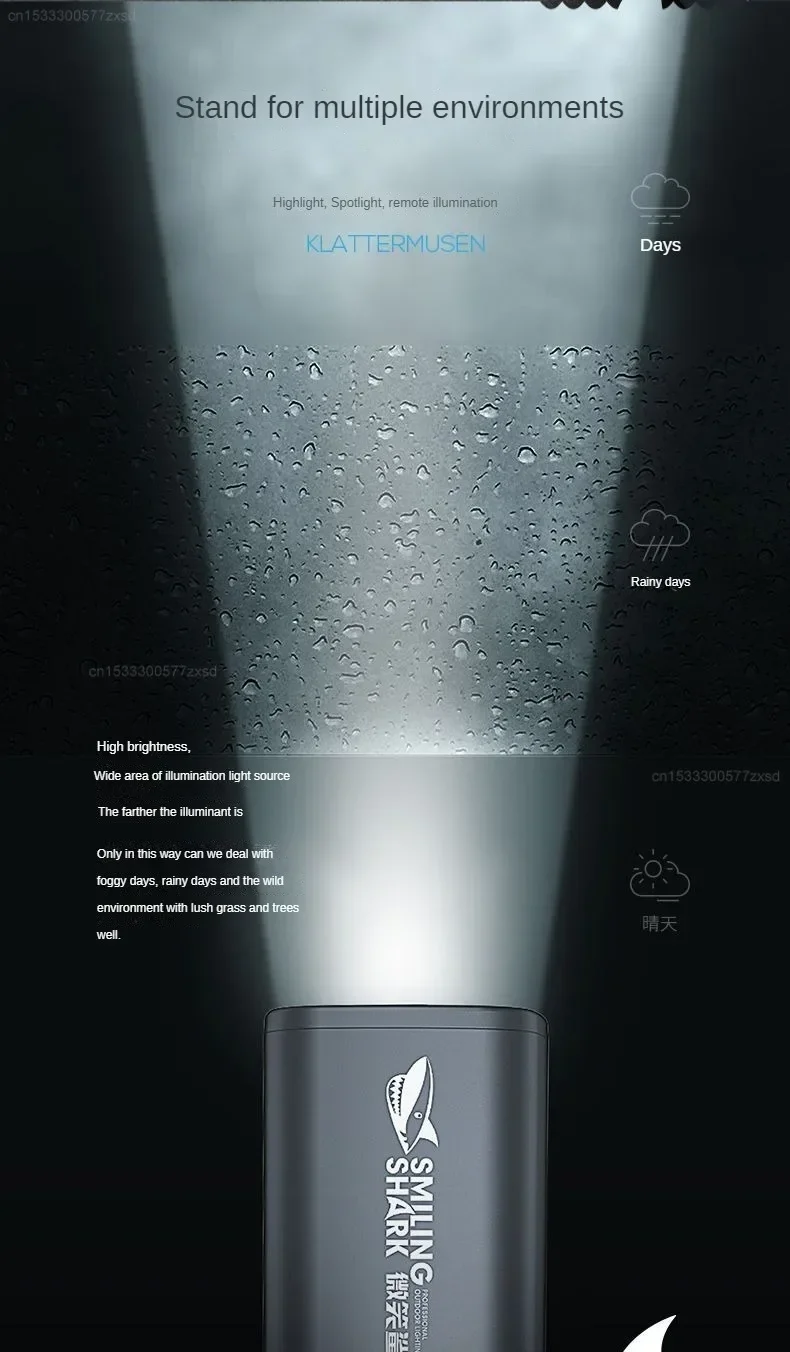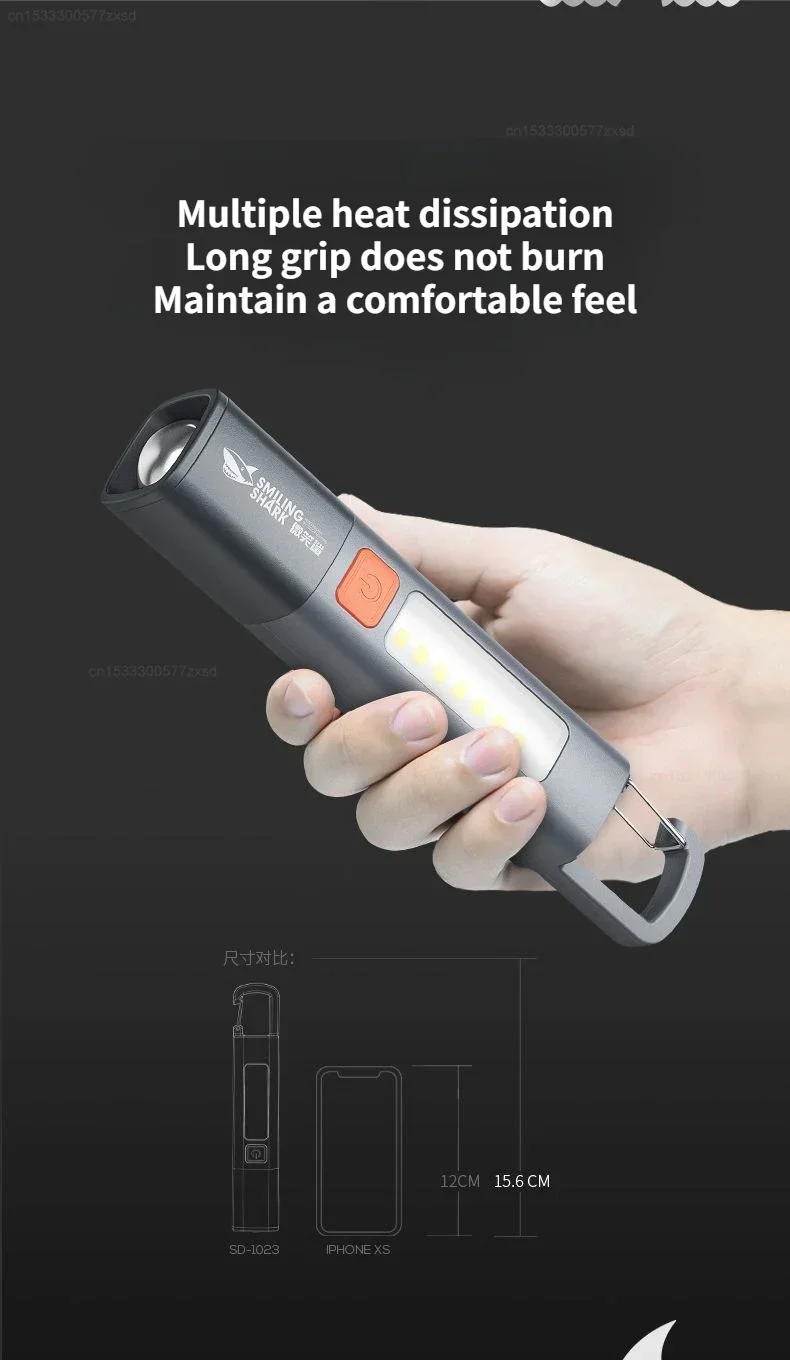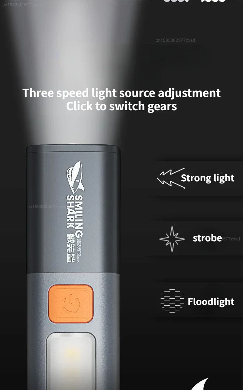 SMILING SHARK-linterna para exteriores, luz fuerte, enfoque Variable con reflector, luces laterales, minilinterna, lámpara de alto brillo