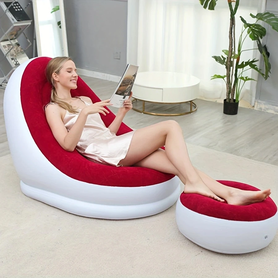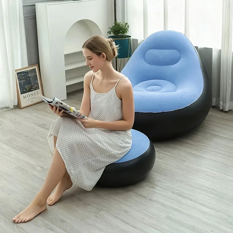 Sofá inflable elegante y práctico de 1 pieza con combinación de reposapiés, sillón informal individual