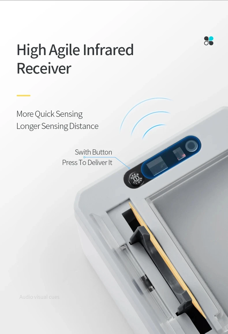 ▶Transceptor infrarrojo de alta sensibilidad: la detección es más sensible y la distancia de detección es más larga.