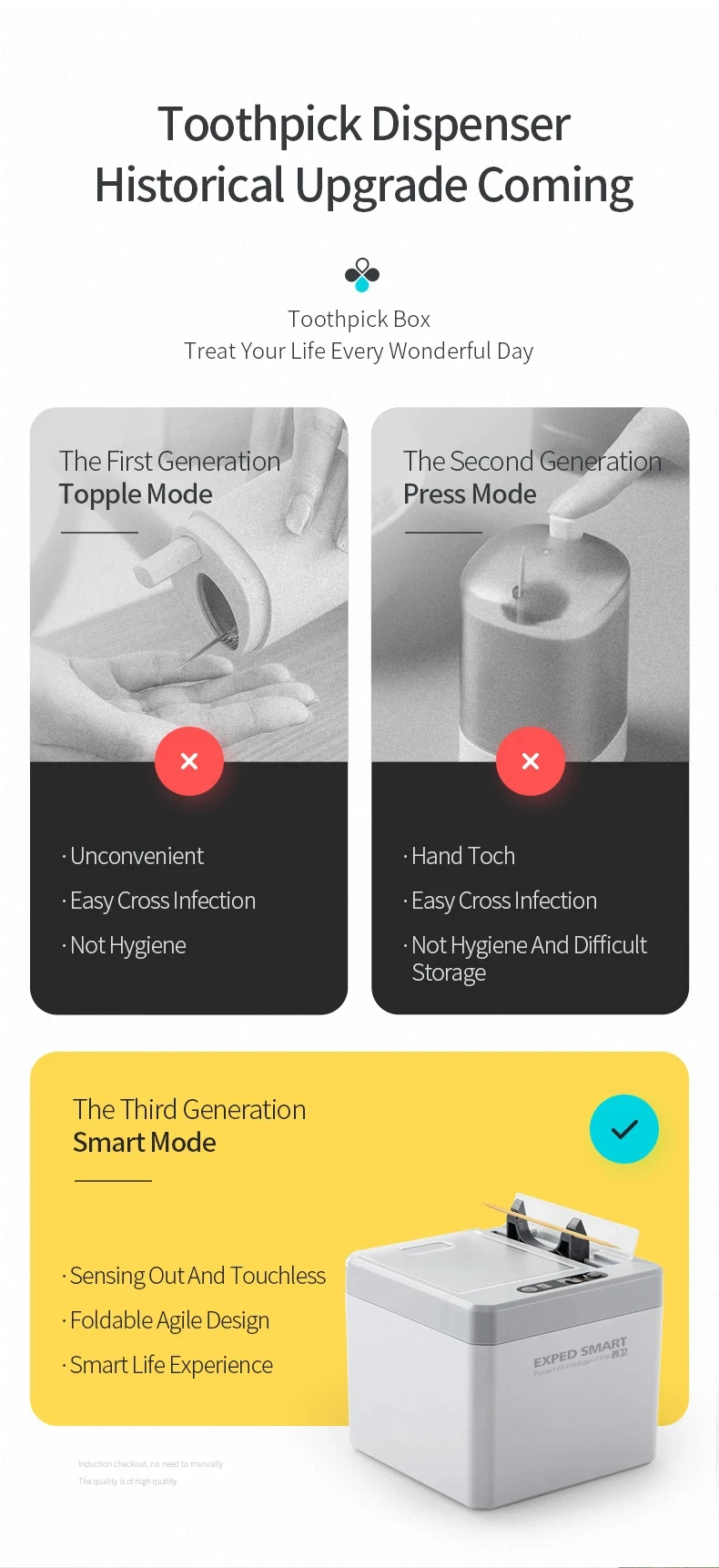 ▶Diseño de la tapa abatible automática de 130 °: la tapa abatible le facilita la extracción de dientes, evitando rascarse o dañarse las manos, no le causará problemas.