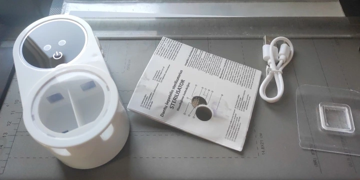 El esterilizador llegó en la fecha programada. Estaba bien embalado. Tiene un aspecto muy bueno y espero que funcione igual de bien. El conjunto incluye un cable de carga y componentes de montaje. Recomiendo la compra a todos.